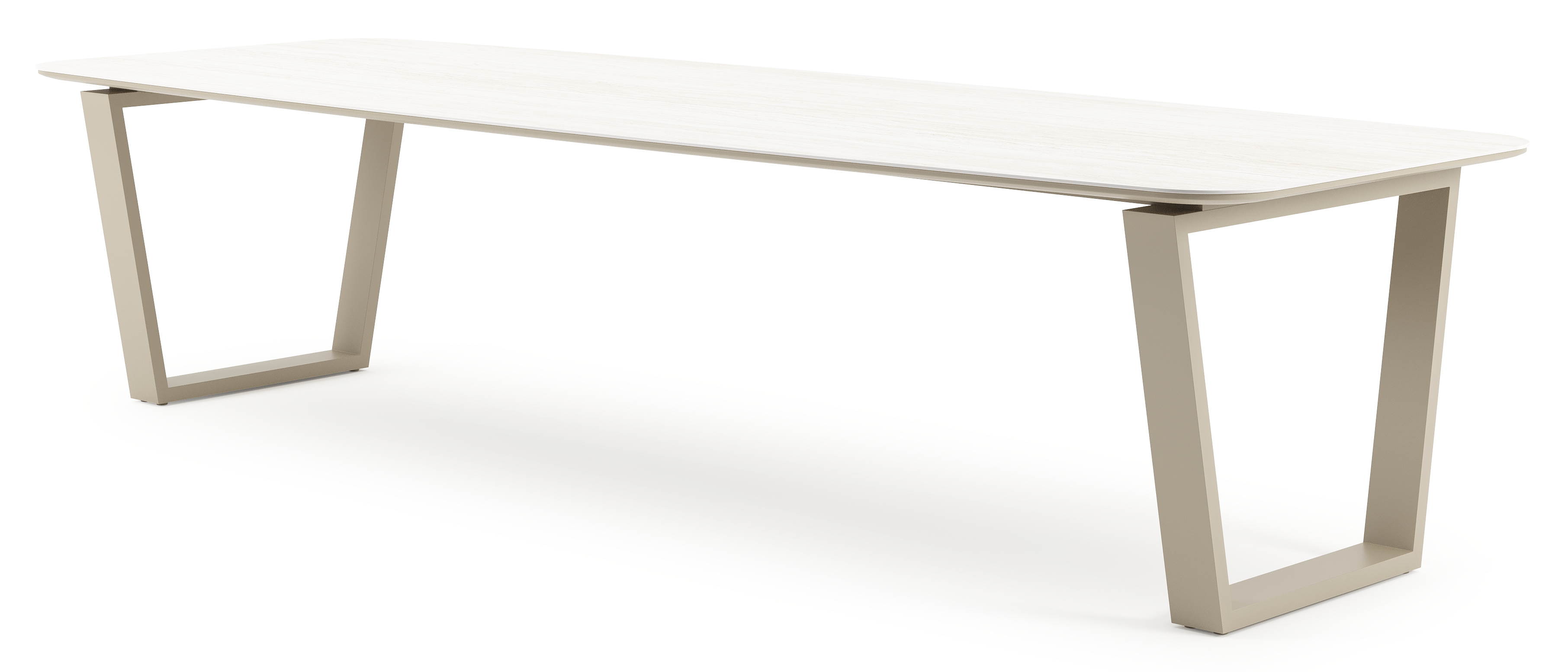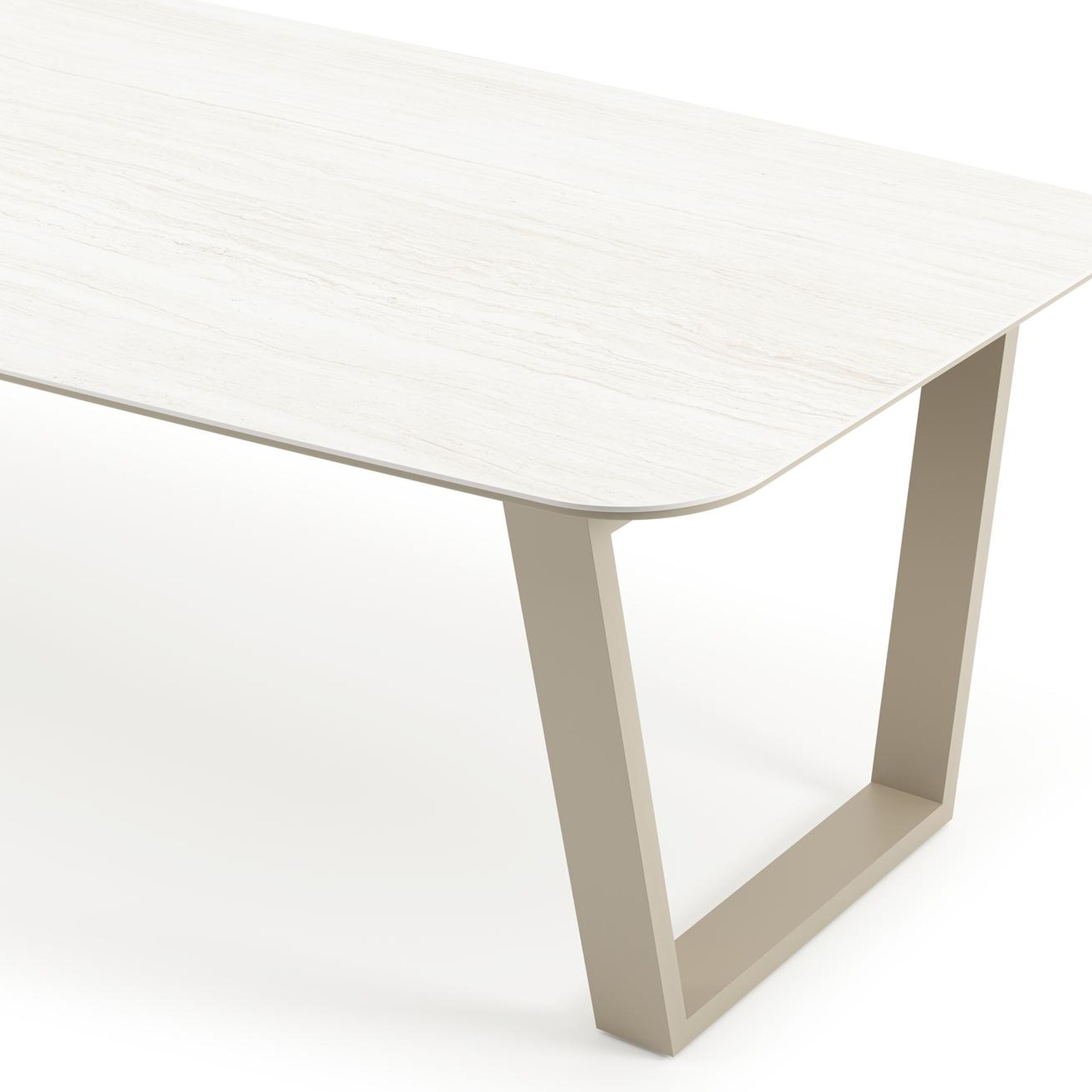 Table de jardin Pagino forme de bateau en aluminium beige et céramique pleine Calista Lg. 315 x Lrg. 115 x Haut. 73 cm | Exterioo mobilier de jardin