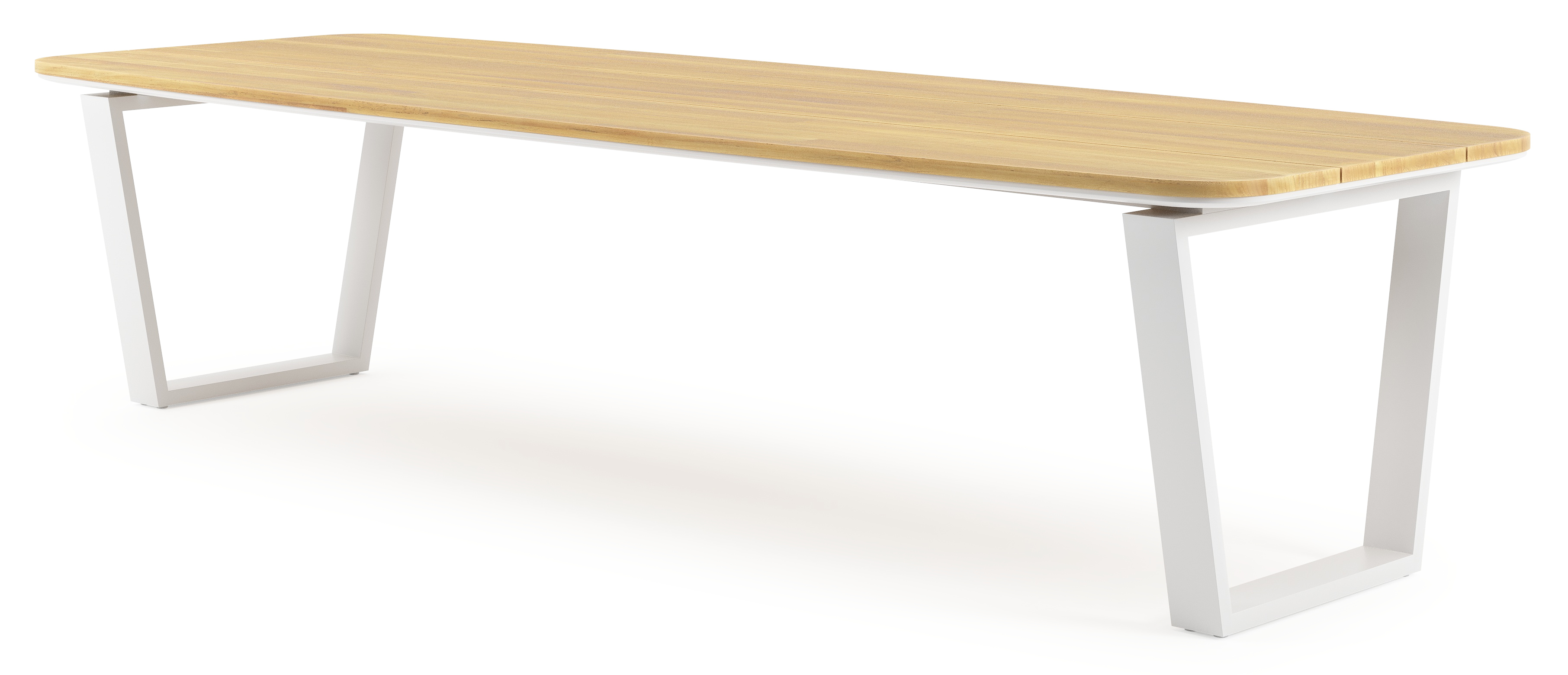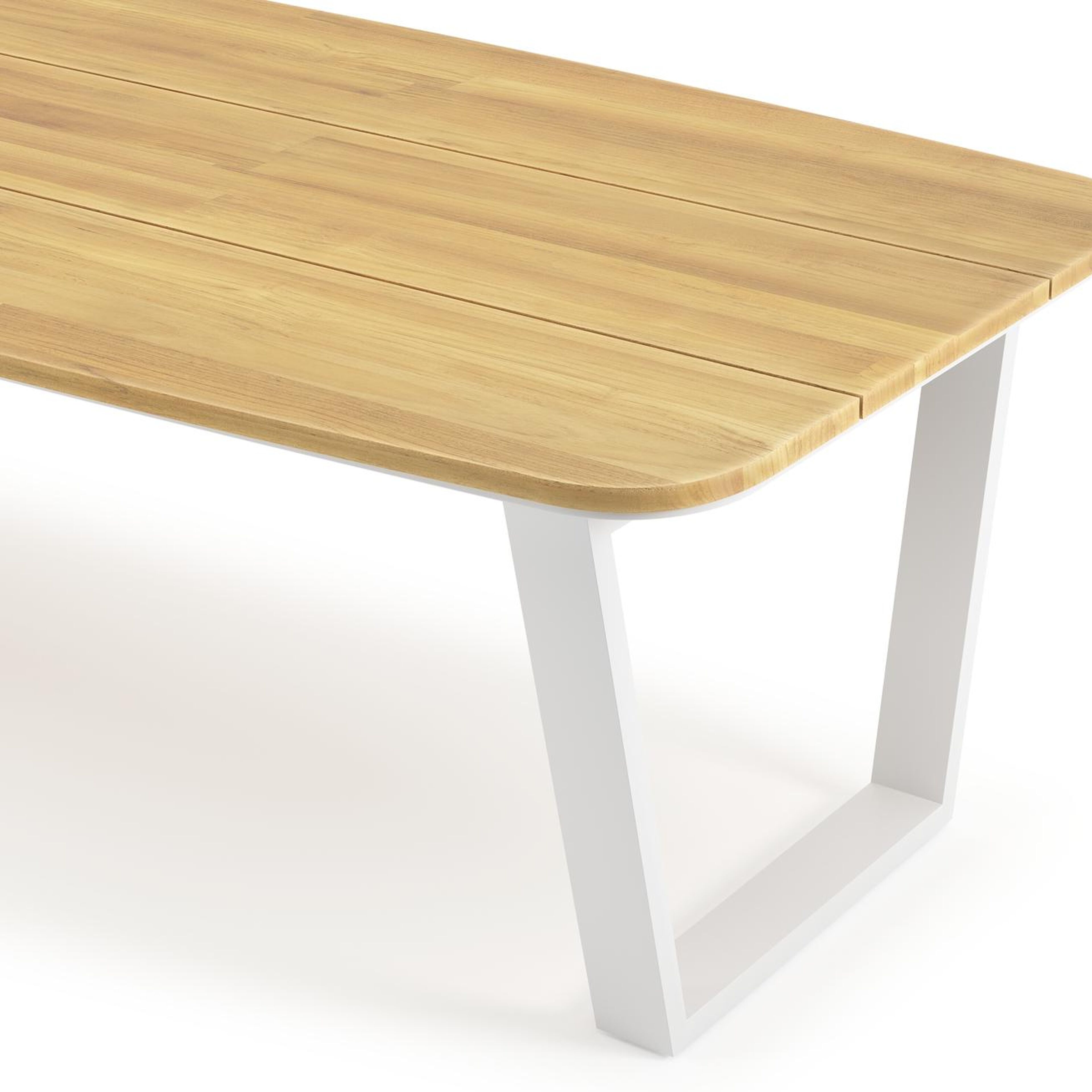 Pagino tuintafel bootvorm in wit aluminium en teak - L 315 x B 115 x H 73 cm | Exterioo mobilier de jardin