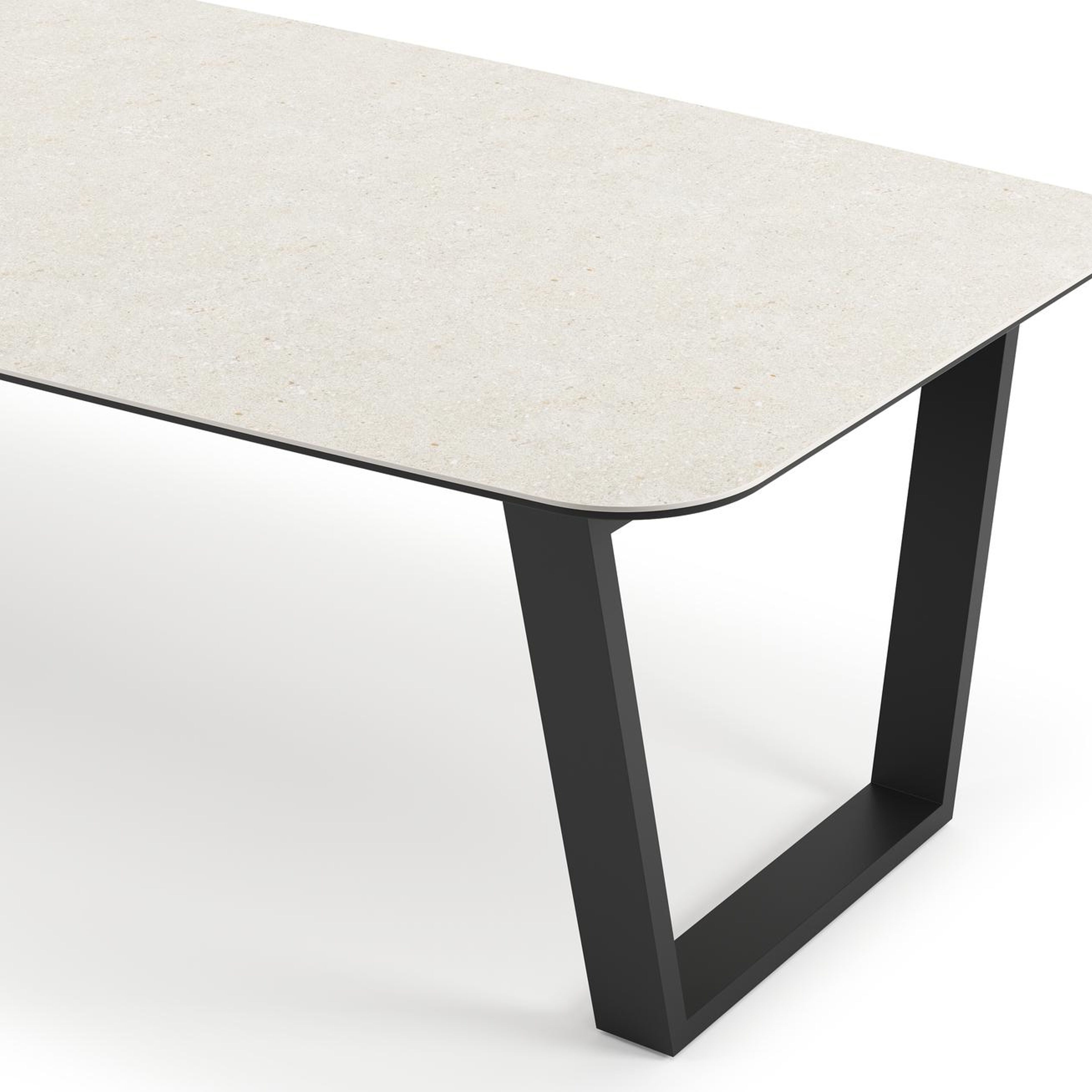 Un plateau de table entièrement en céramique consiste en une plaque en céramique qui est cuite à une température extrêmement élevée. Ce matériau est très solide et résiste aux coups. Un plateau de table entièrement en céramique résiste au gel, à la chaleur et aux rayures, et est facile à nettoyer.