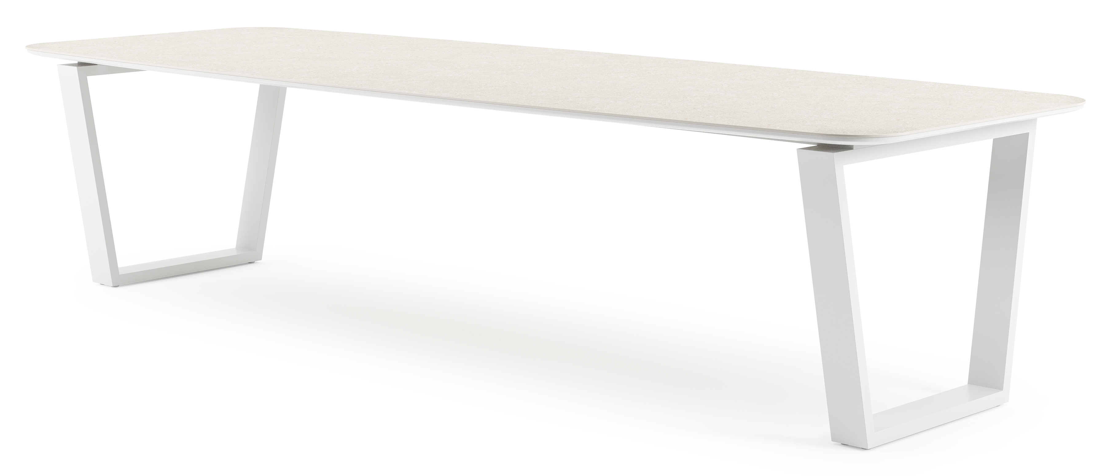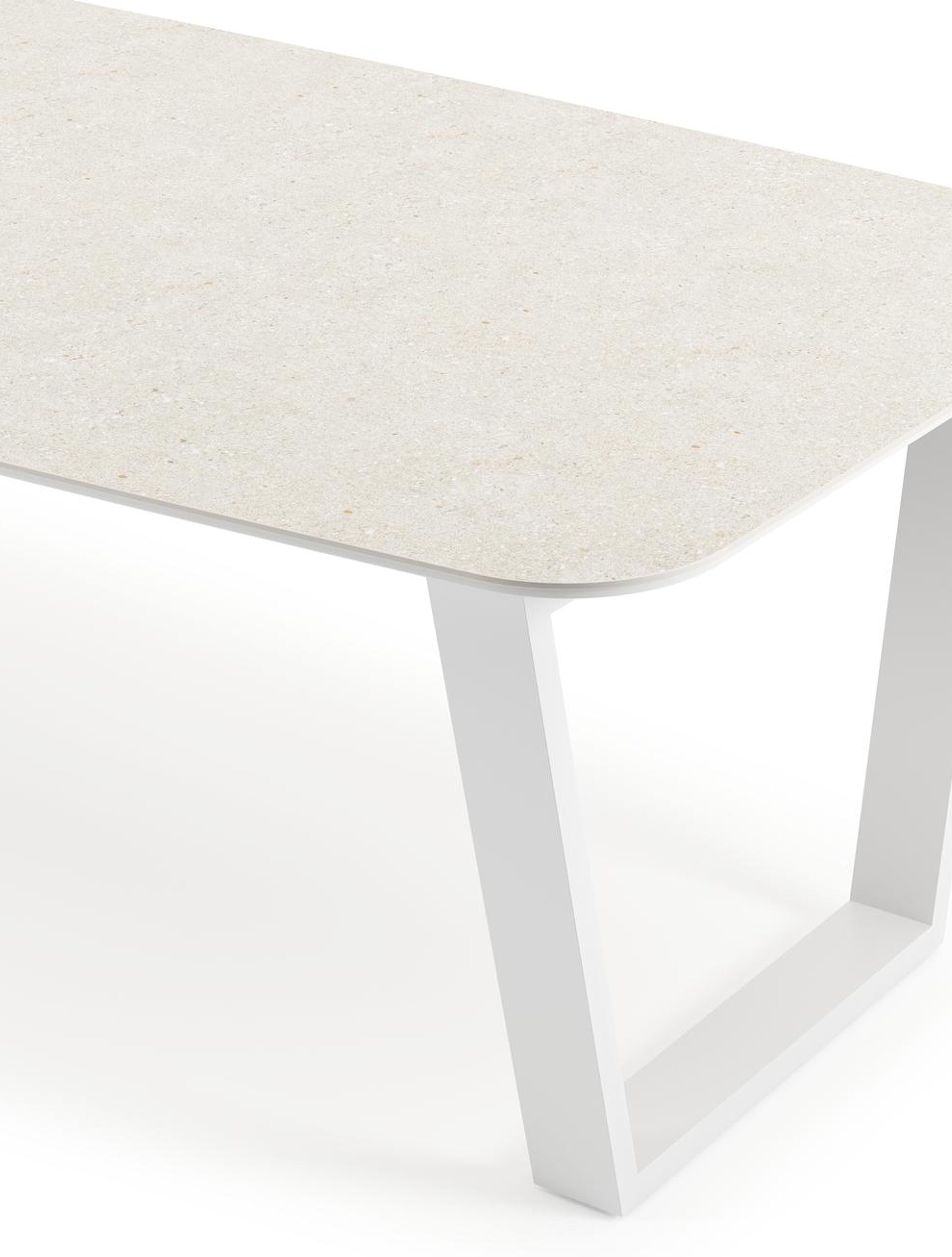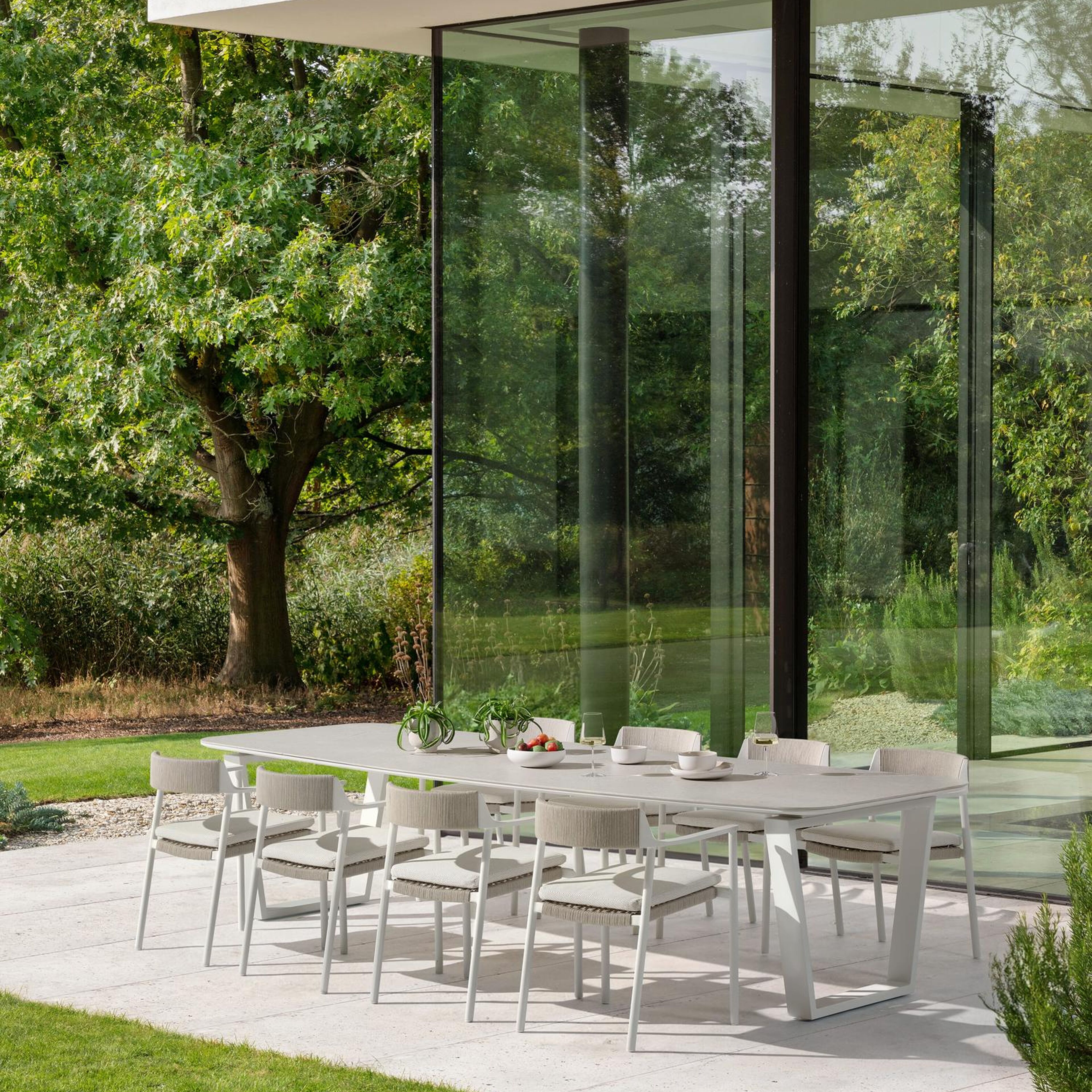 Table de jardin Pagino en aluminium blanc et céramique pleine shilin - Lg 315 x Larg. 115 x H 74 cm | Exterioo mobilier de jardin