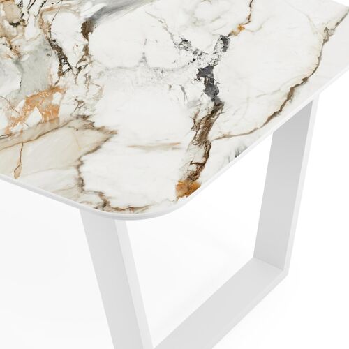Le Calacatta Luxe est un véritable accroche-regard à l’aspect luxueux. Le blanc est la couleur de base, mais des contrastes et des nuances de couleurs intenses produisent un effet saisissant. La finition de veines grises et jaune or crée un magnifique effet de marbre.