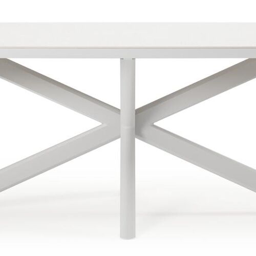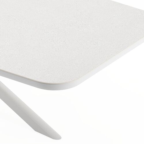 Table de jardin Pamplona forme bateau en aluminium blanc et sintered stone massive Topo minéral - L 270 x L 115 x H 72 cm | Exterioo