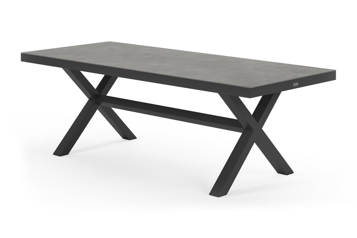 Table de jardin Reza rectangulaire en aluminium noir et céramique pleine gris - Lg. 220 x Lrg. 92 x Haut. 73,5 cm | Exterioo