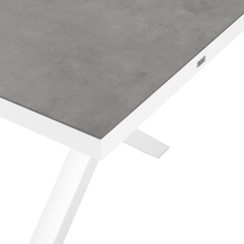 Table de jardin Reza rectangulaire en aluminium blanc et céramique pleine gris - Lg. 220 x Lrg. 92 x Haut. 73,5 cm | Exterioo