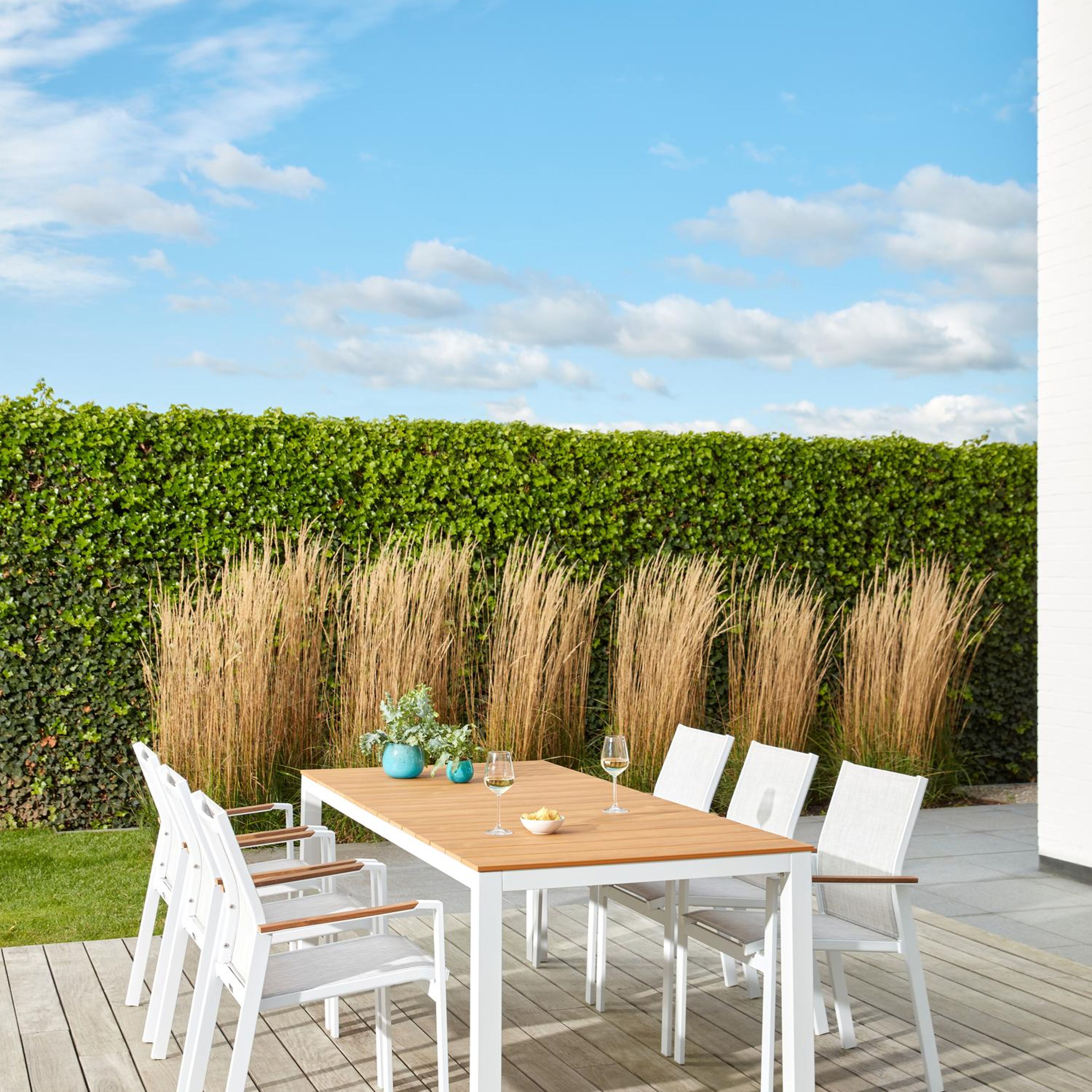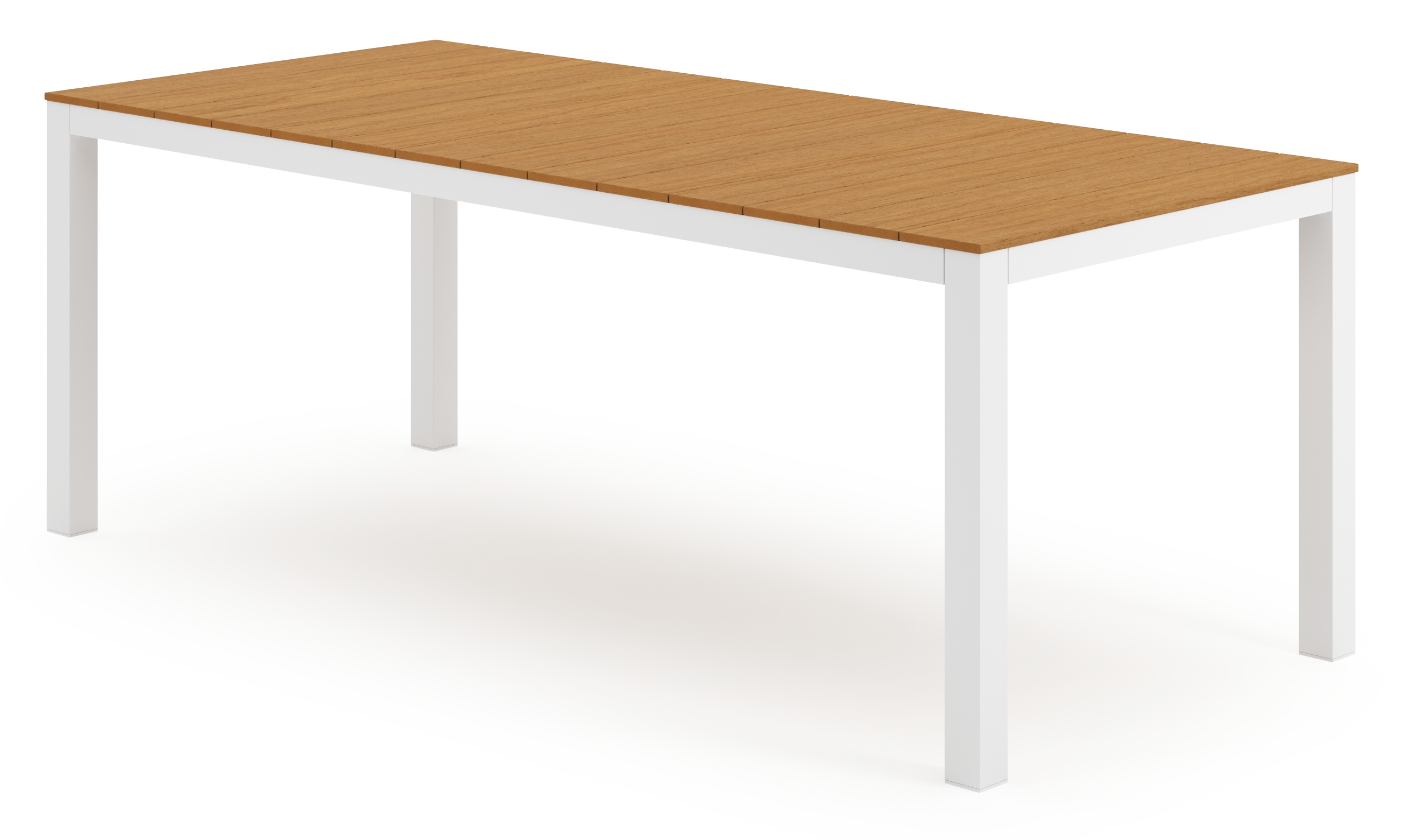 Table de jardin Toma en aluminium blanc et polywood - Lg 200 x Larg. 90 x H 72 cm | Exterioo mobilier de jardin