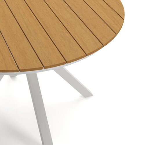 L’armature de la table est en aluminium inoxydable, un matériau robuste mais léger, qui est facile à déplacer. La surface présente une finition lisse, de sorte qu’elle n’attire pas la saleté et est facile à entretenir. Le revêtement poudré garantit la résistance aux UV et aux intempéries de votre meuble.