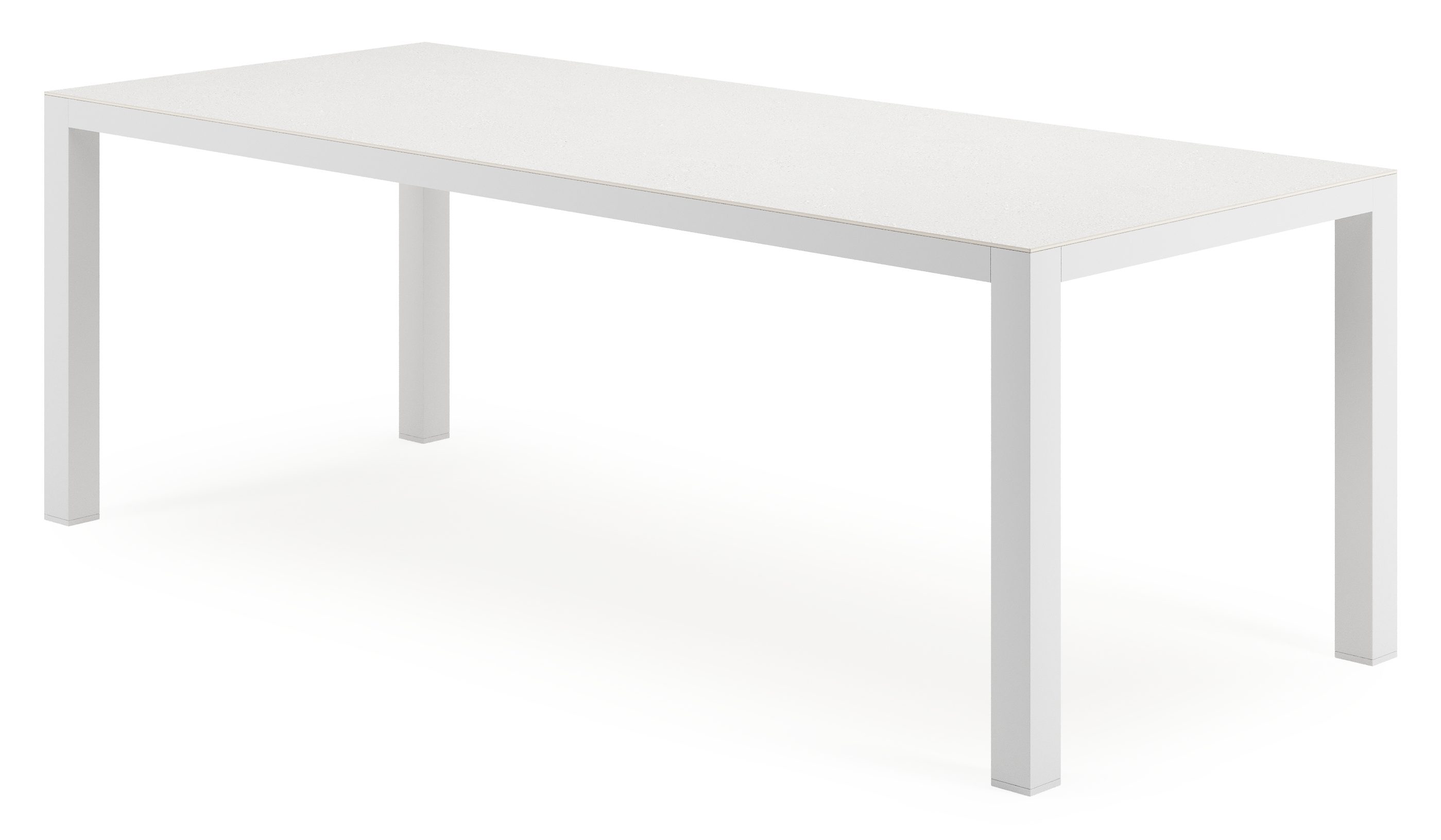 Table de jardin rectangulaire Varese en aluminium blanc et sintered stone Topo minérale - L 220 x P 92 x H 73,5 cm | Exterioo mobilier de jardin