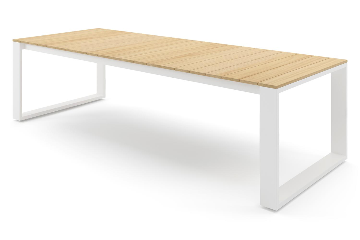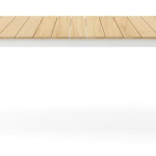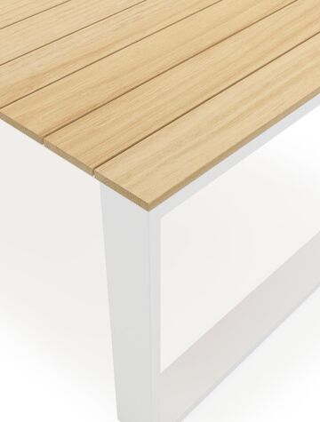 La table Verato a une armature épurée en forme de U. L’armature est en aluminium, un matériau léger mais robuste et inoxydable qui convient très bien aux meubles de jardin. Cette table est dotée d’un plateau en teck. Cela crée un effet naturel et chaleureux.