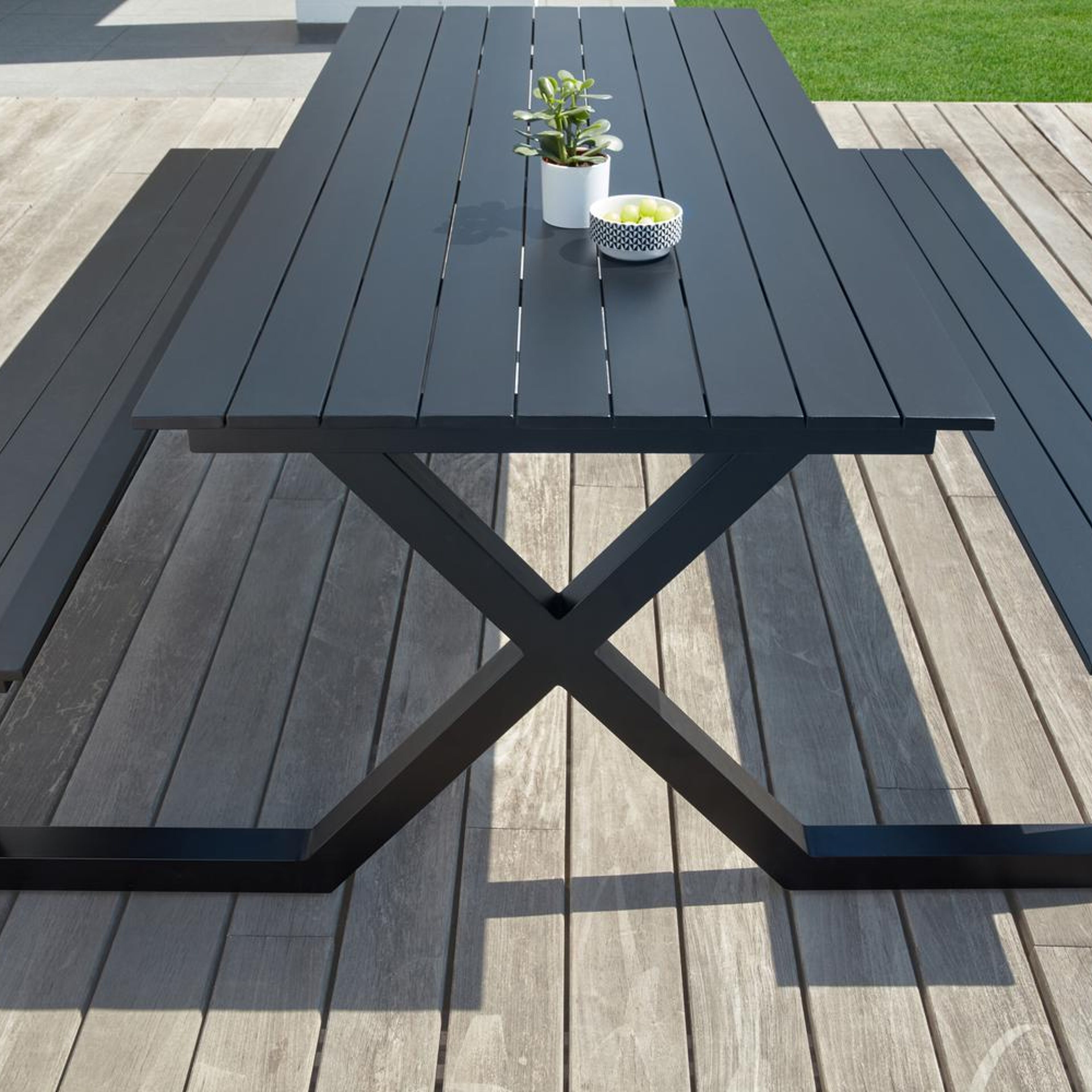 Le Table pique-nique Mundo a un look moderne et confortable. Le cadre est en aluminium inoxydable, un matériau solide et léger. Vous pouvez facilement reconnaître la table de pique-nique par ses pieds croisés et ses bords biseautés, ce qui donne à la table de pique-nique un bon support et un caractère robuste. De plus, la table de pique-nique a également une entrée basse, ce qui facilite l'assise. Avec le Table pique-nique Mundo, vous pouvez profiter de grands moments en plein air à un prix compétitif.