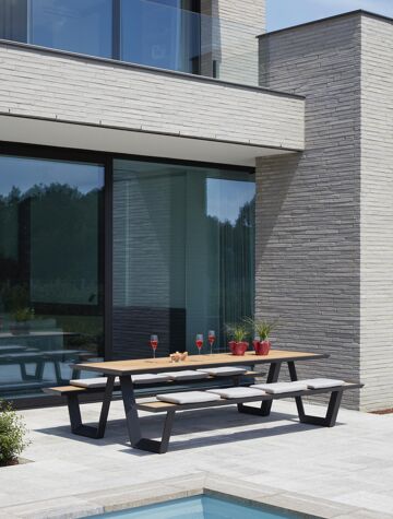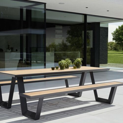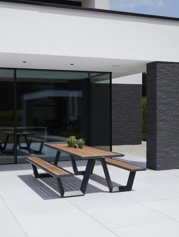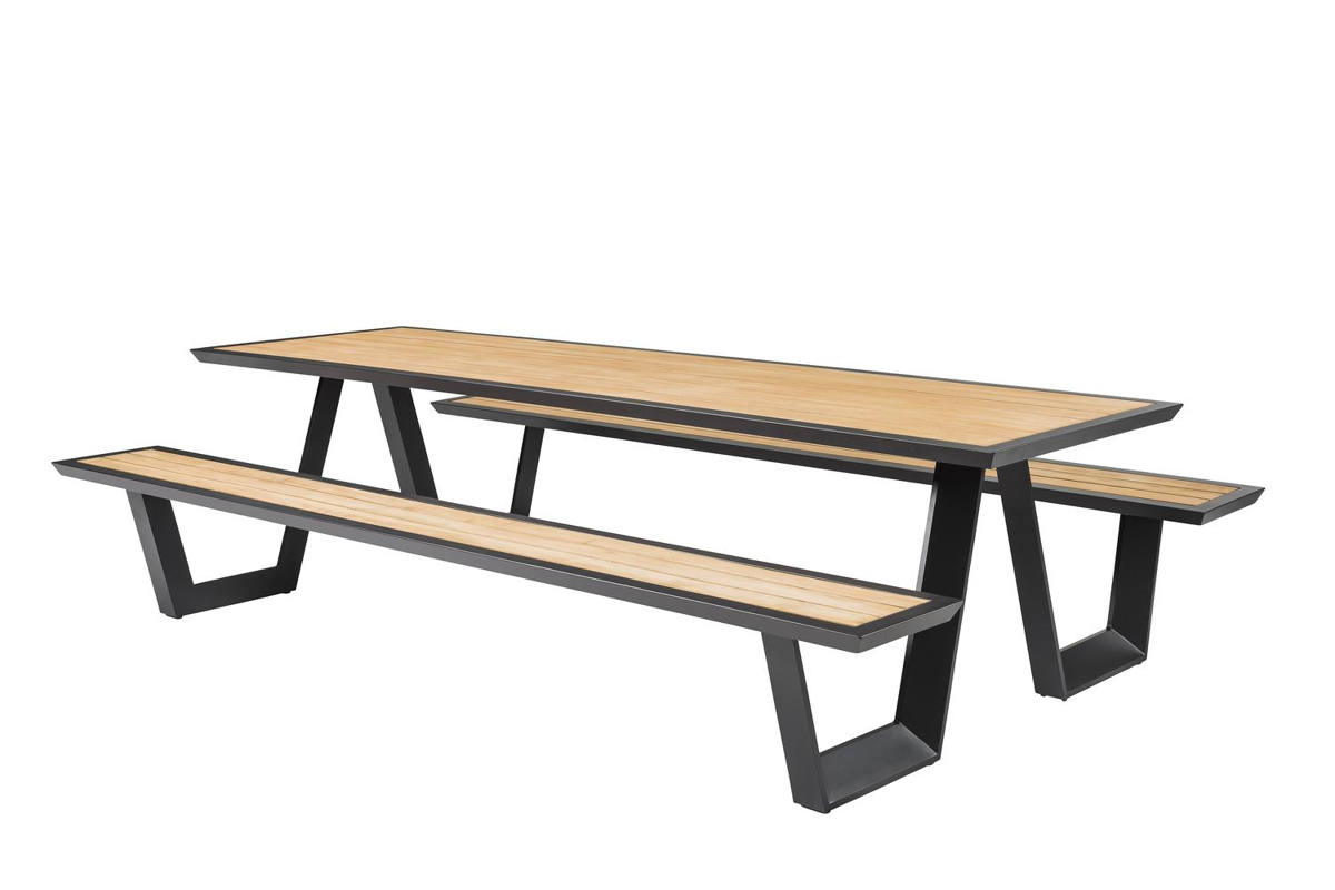 Table de pique-nique Sevilla en aluminium noir et teck - Lg 280 x Larg 175,5 x H 71 cm | Exterioo