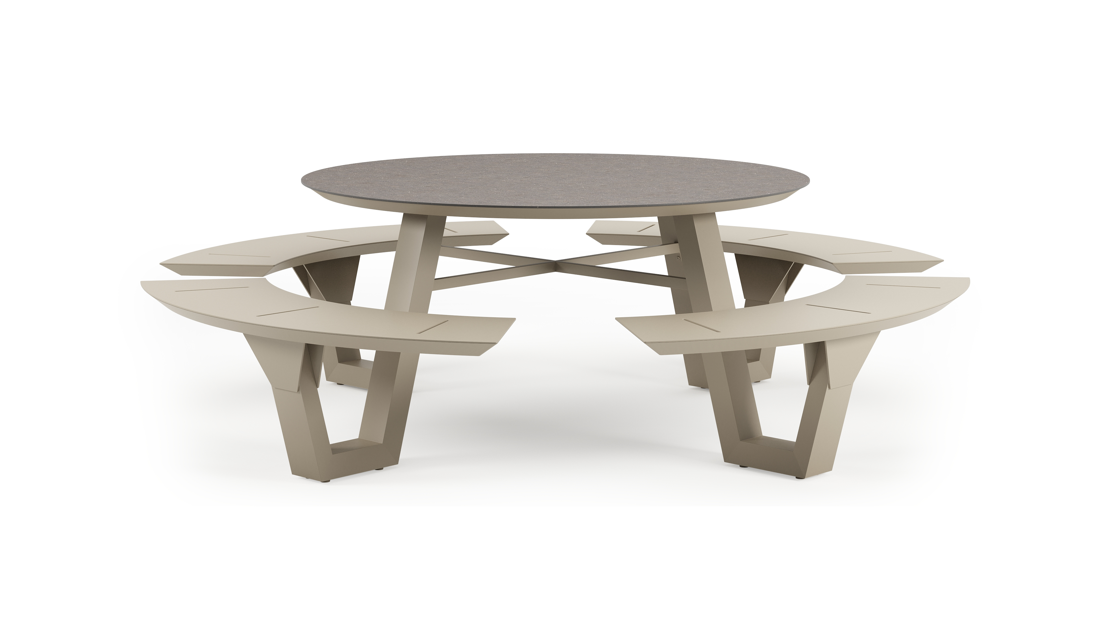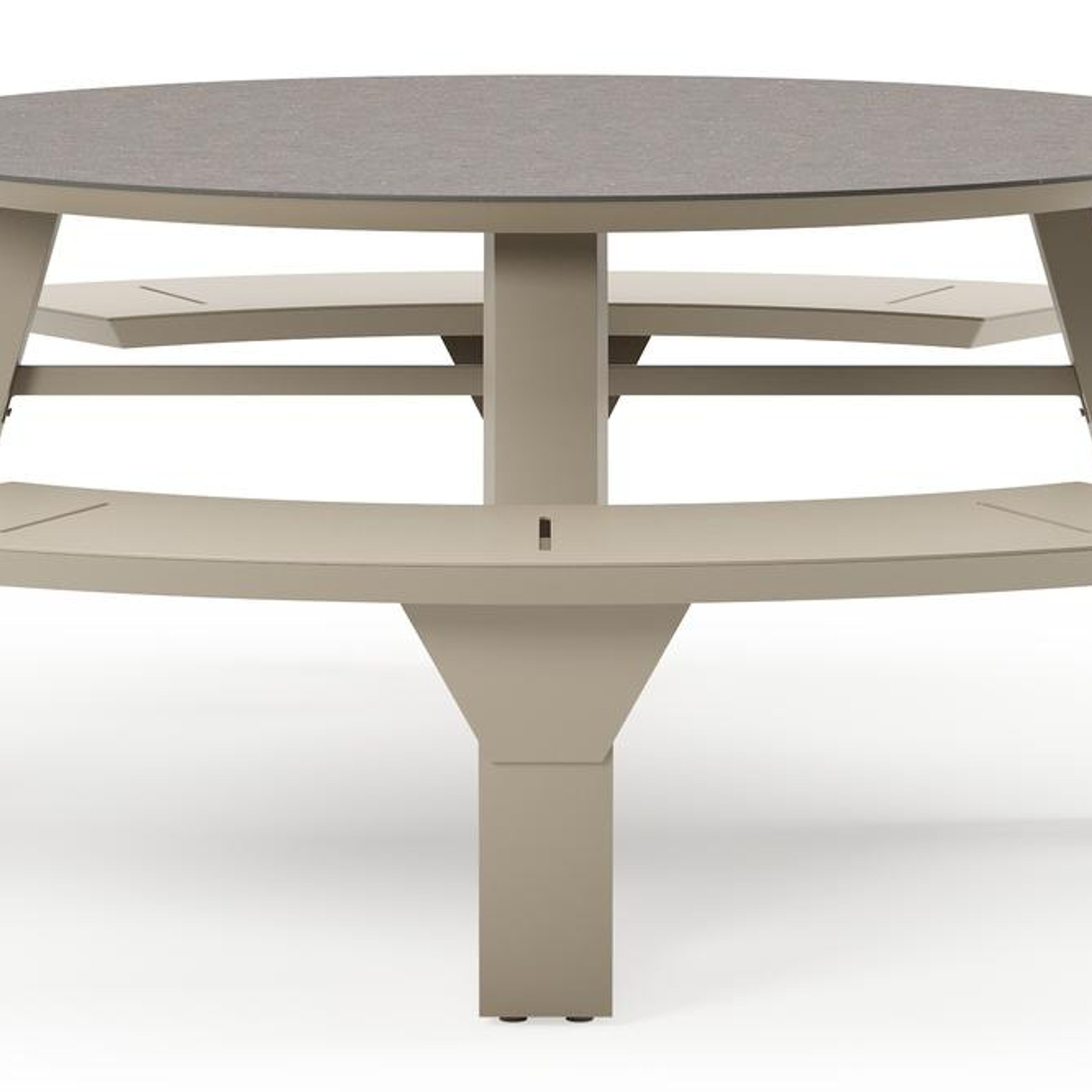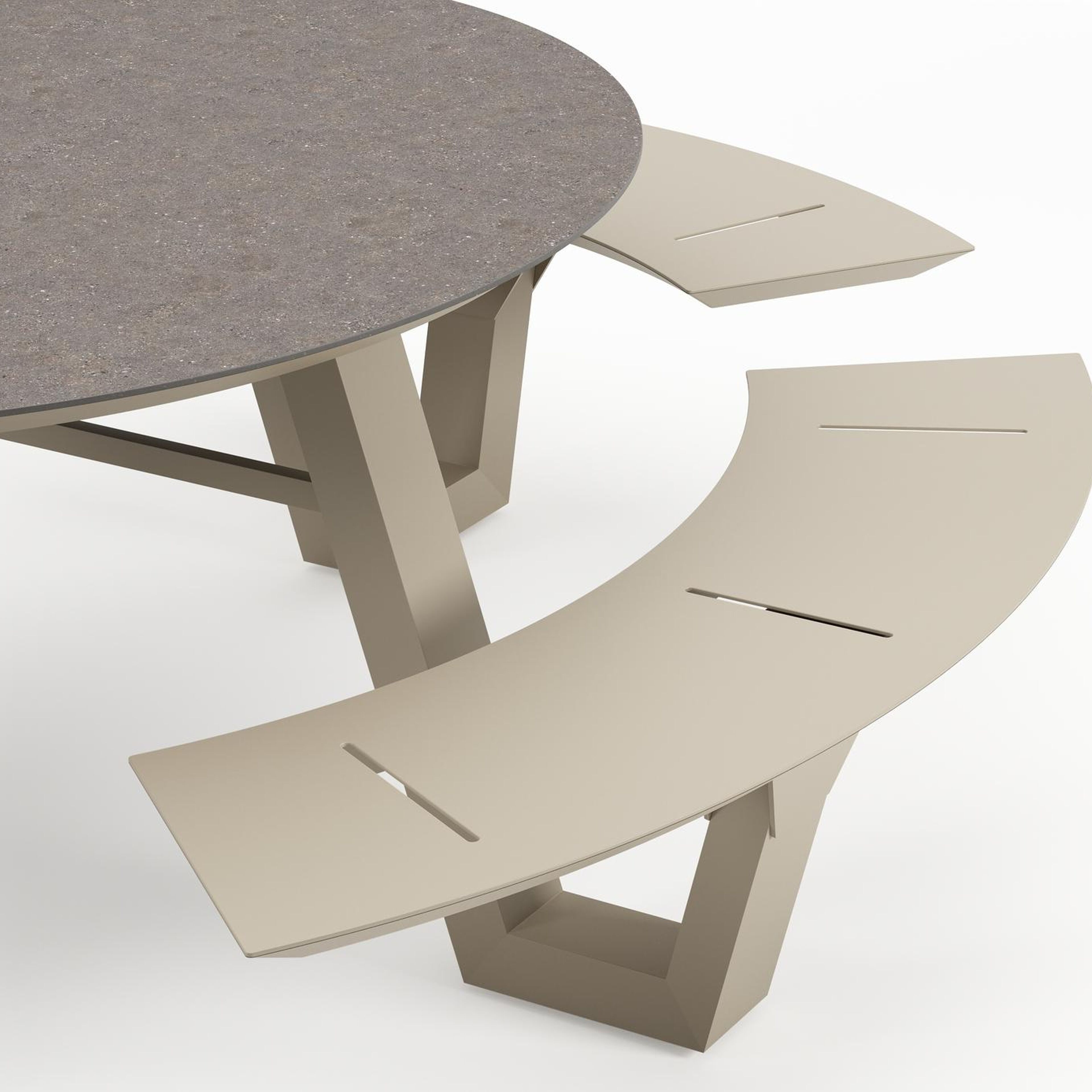 Table de pique-Rondino ronde en aluminium beige et céramique pleine Wulong - Diam. 148 x Haut. 71.5 cm | Exterioo mobilier de jardin