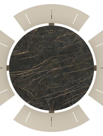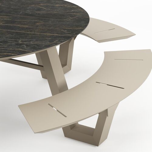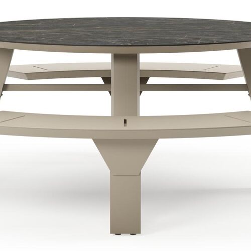Table de pique-Rondino ronde en aluminium beige et céramique pleine Black Obsession - Diam. 148 x Haut. 71.5 cm | Exterioo