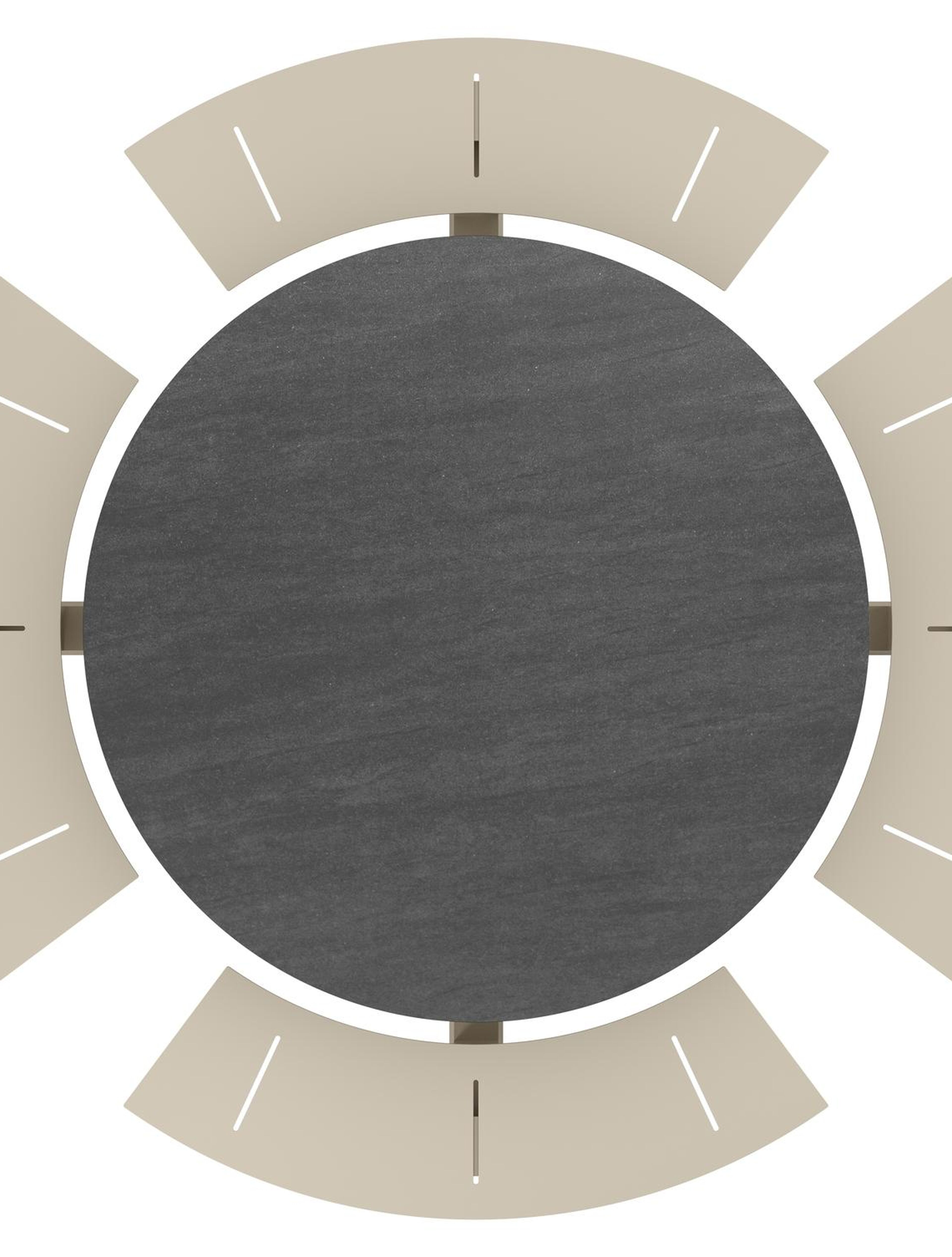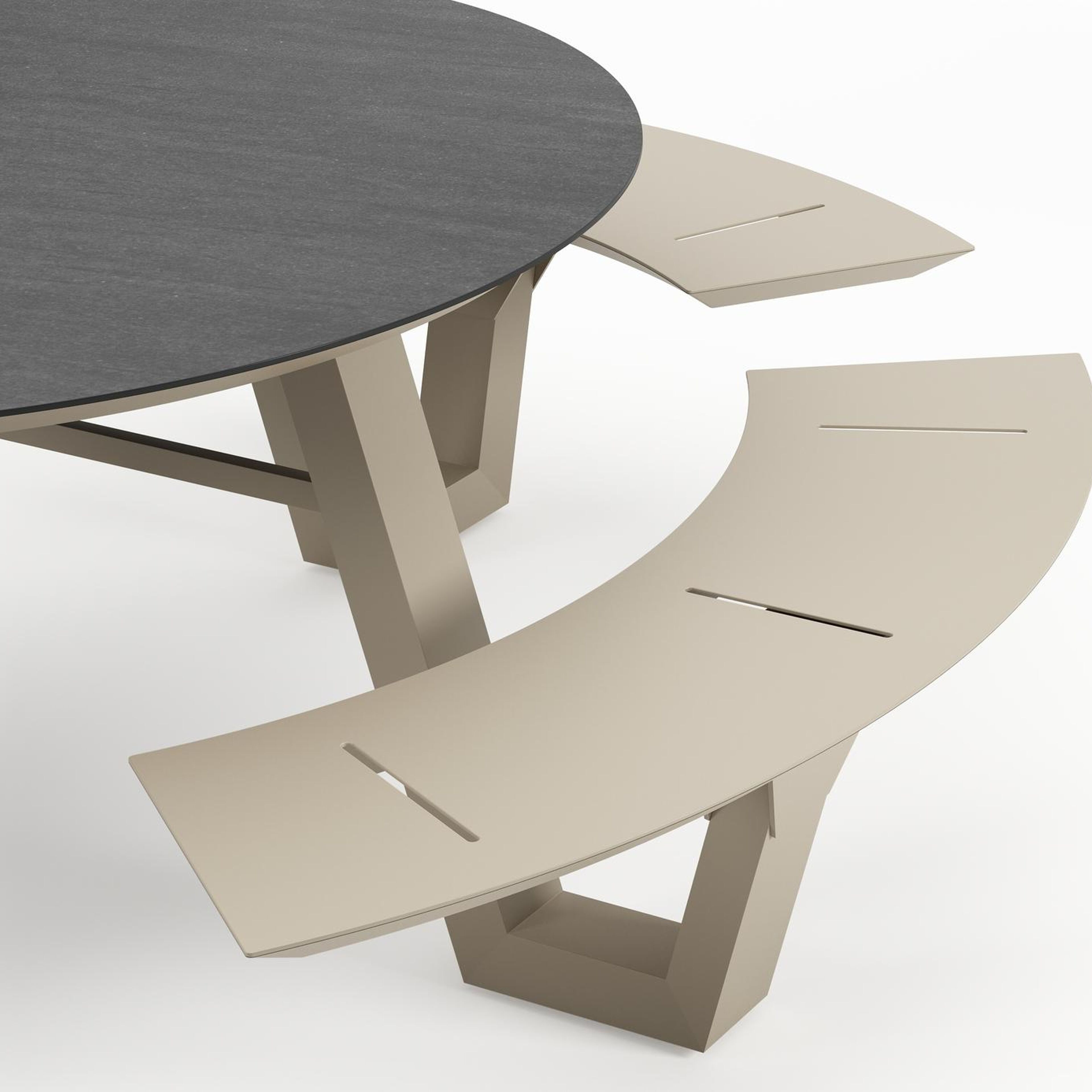 Table de pique-Rondino ronde en aluminium beige et céramique pleine Basalt Black - Diam. 148 x Haut. 71.5 cm | Exterioo mobilier de jardin