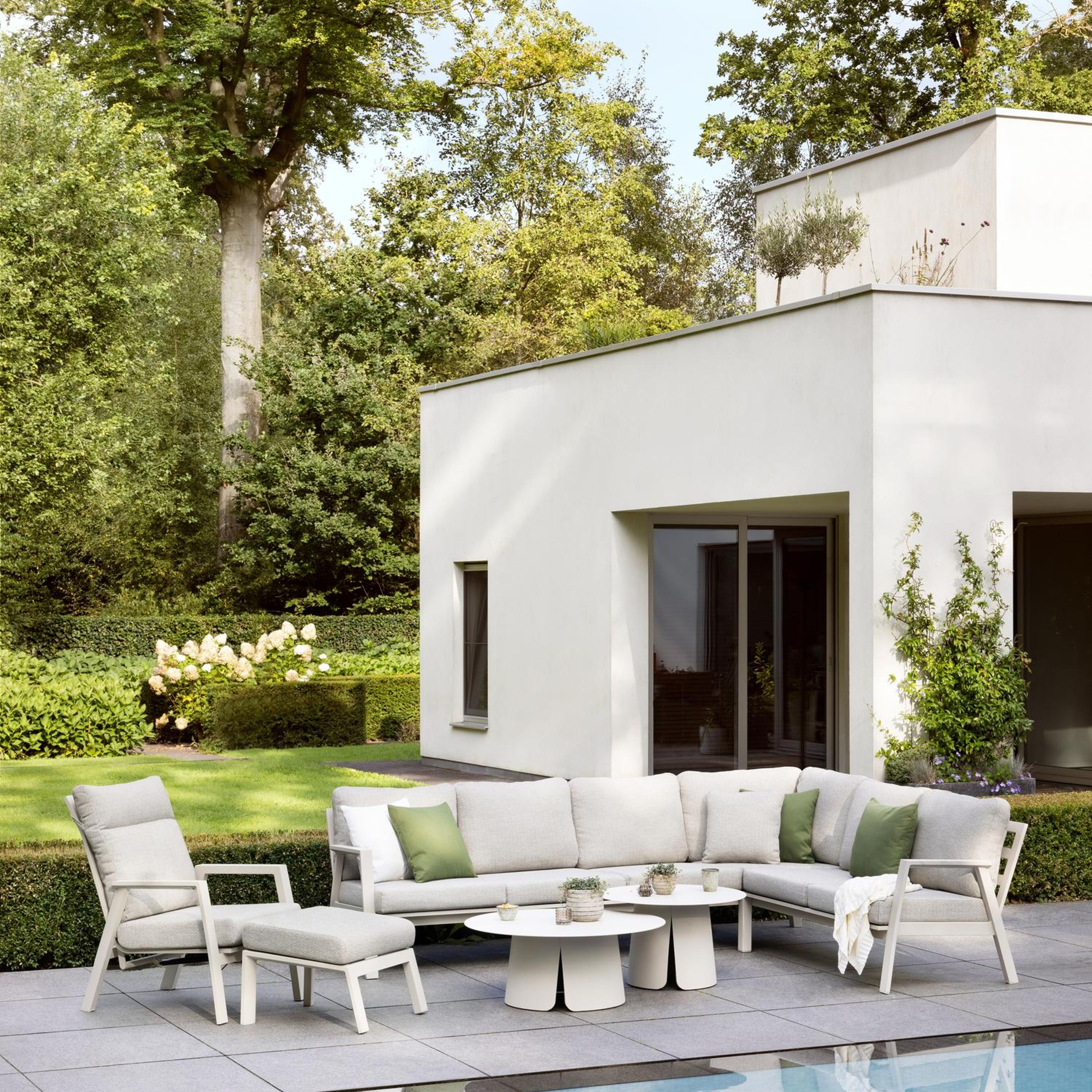 Les deux tables sont en aluminium inoxydable, un matériau robuste mais léger, qui est facile à déplacer. La surface présente une finition lisse, de sorte qu’elle n'attire pas la saleté et est facile à entretenir. Le revêtement poudré garantit la résistance aux UV et aux intempéries de votre meuble.