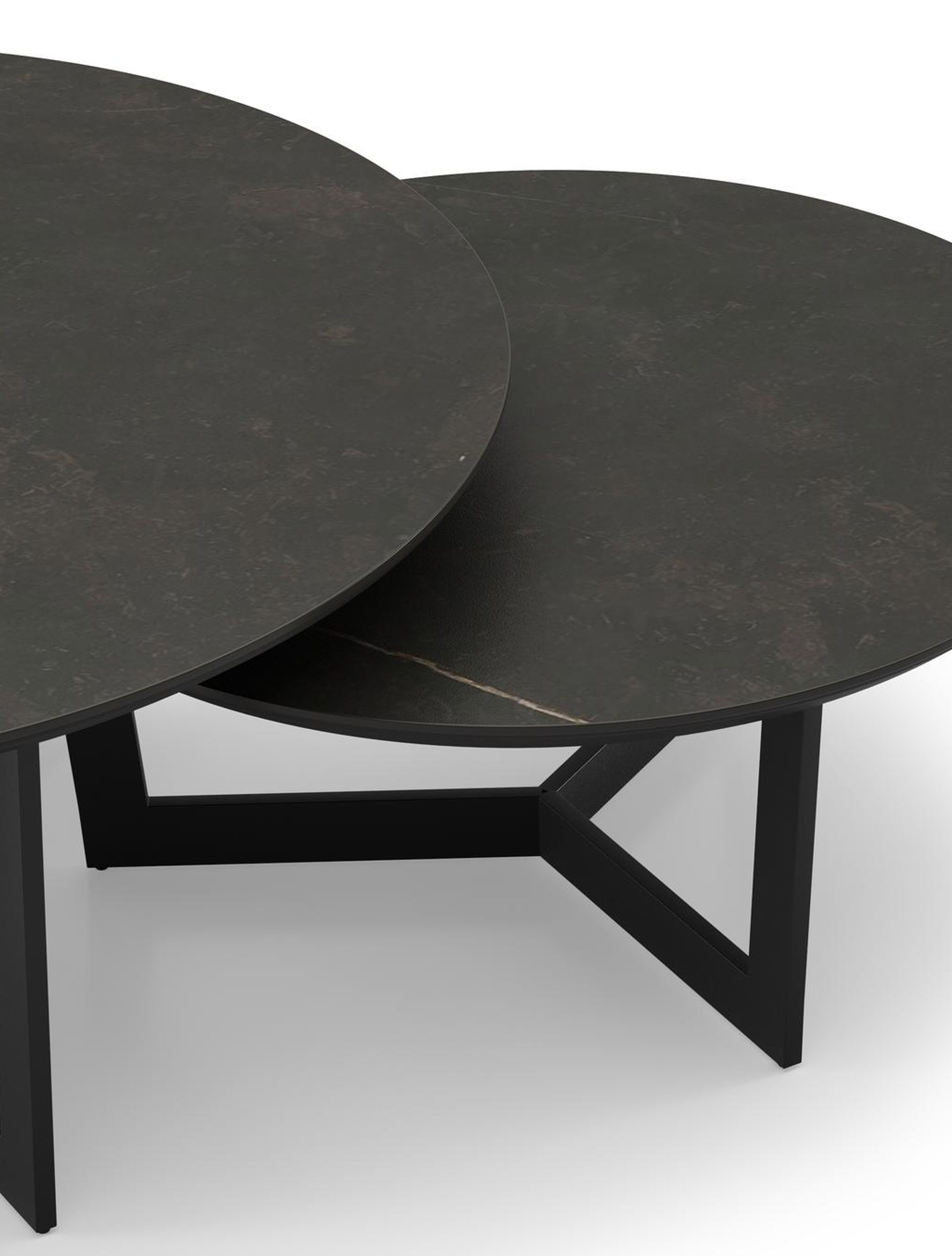 Faites de votre jardin une oasis de style et de confort avec notre ensemble de deux tables basses Lacrima. Les tables basses sont idéales pour y déposer vos en-cas et vos boissons. L'armature en aluminium est résistante à la rouille, de sorte que ces tables basses sont parfaites pour toutes les saisons. Le plateau de table est en céramique pleine, un matériau de qualité supérieure qui est réputé pour sa durabilité et sa résistance aux intempéries. Il résiste aux rayures, aux taches et à la décoloration et est donc idéal pour un usage extérieur. De plus, la céramique pleine est facile à nettoyer et à entretenir.