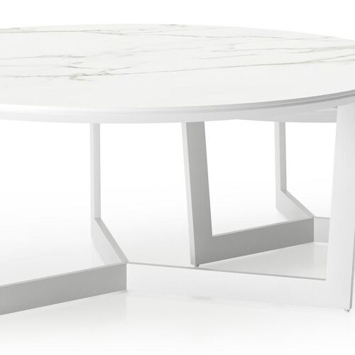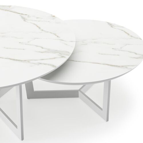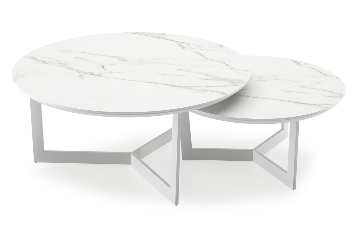 Tables basse Lacrima en aluminium blanc et céramique pleine calacatta - Dia. 85/65 x H 35/30 cm | Exterioo