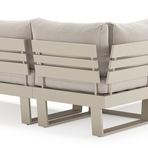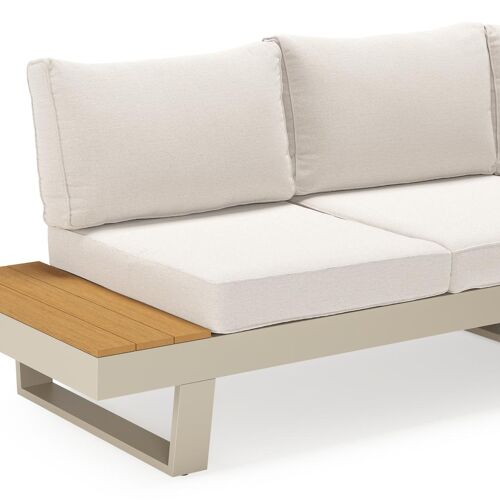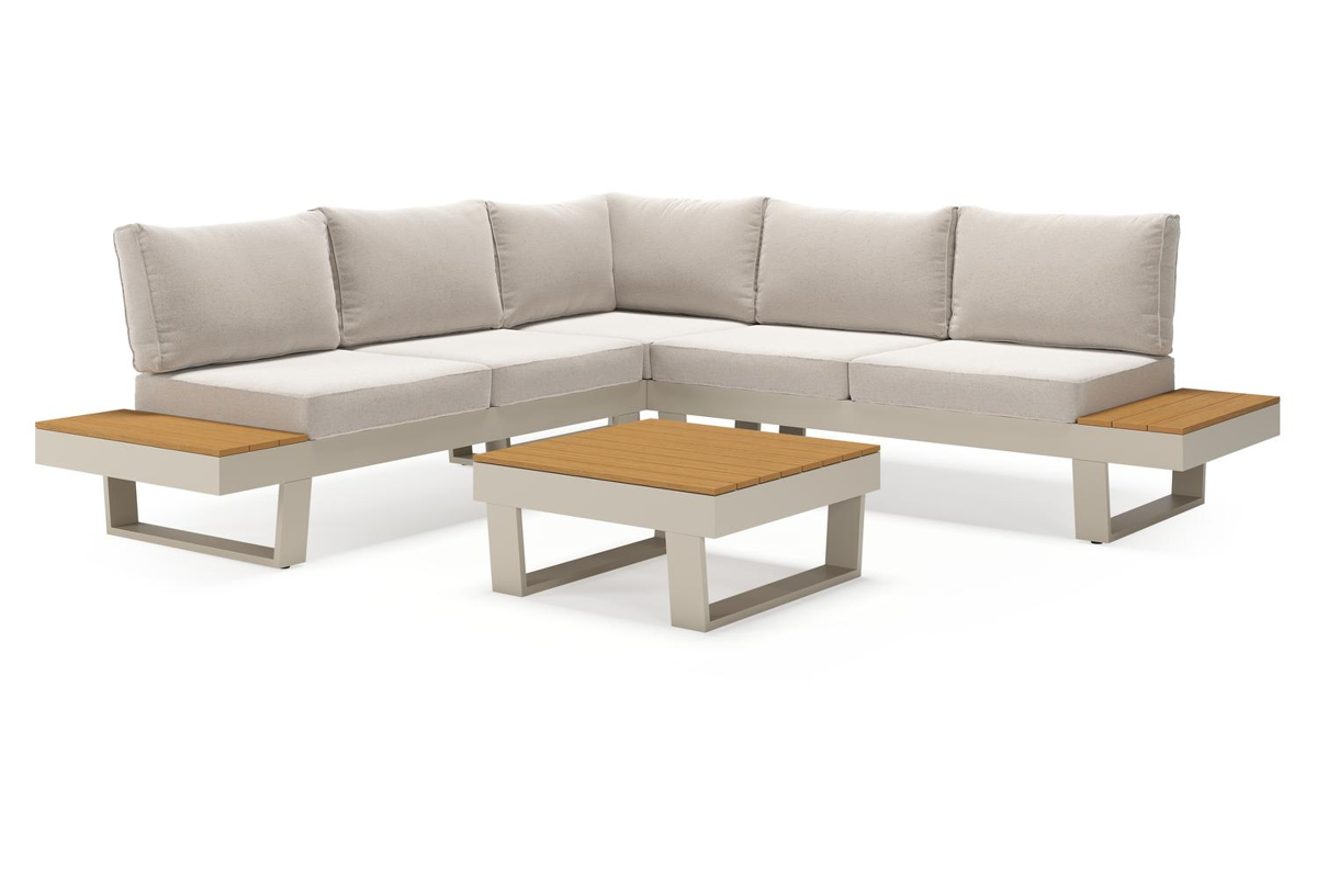Alora loungehoek in beige aluminium en polywood met beige Weather+ Softtouch kussen en loungetafel | Exterioo