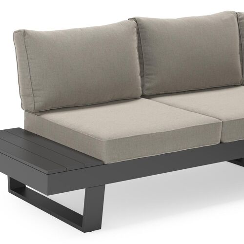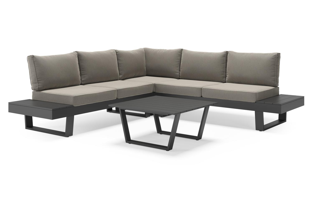 Alora loungehoek in zwart aluminium met grijs Weather+ Softtouch kussen en loungetafel | Exterioo