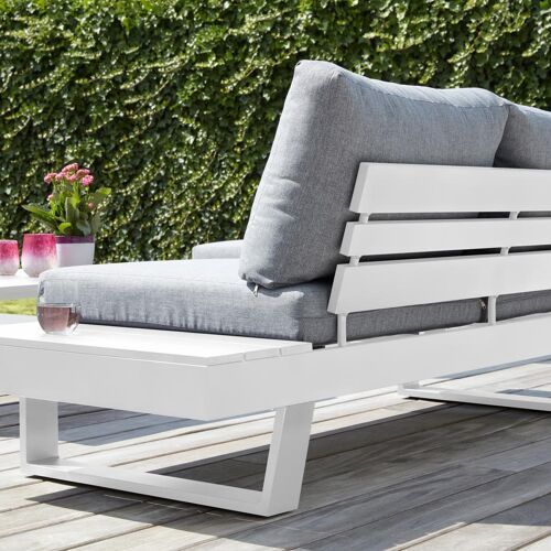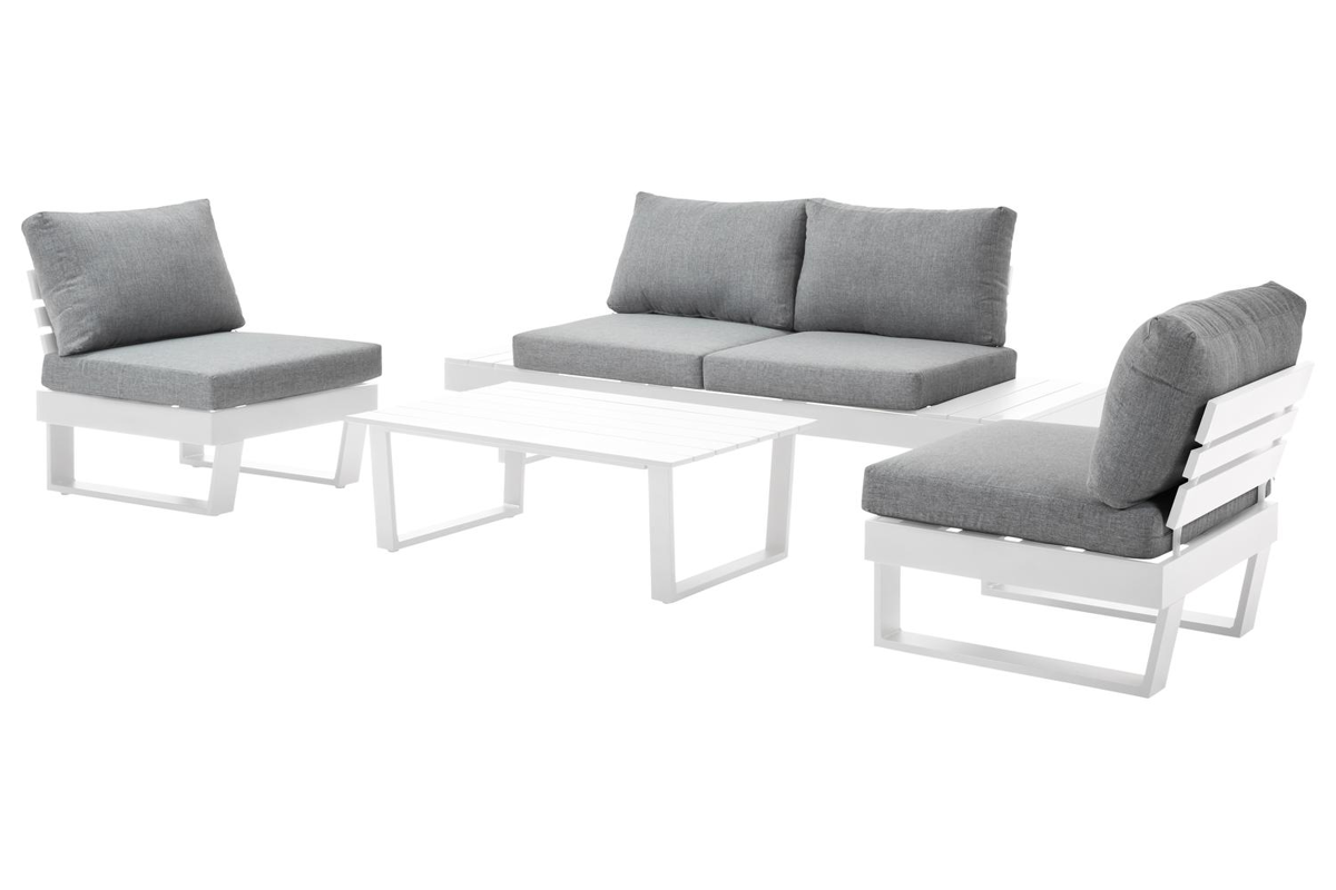Alora loungeset in wit aluminium met grijs polyester kussens en loungetafel | Exterioo
