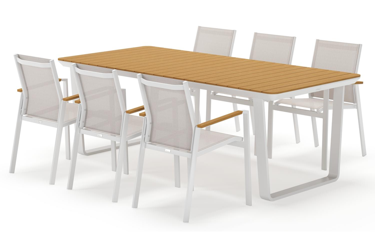 Alora tuinset rechthoekig in wit aluminium en polywood met 6 Bahia tuinstoelen | Exterioo