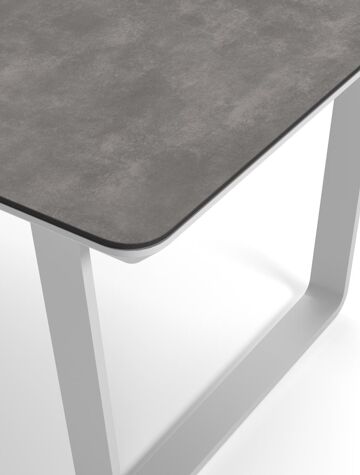 Alora tuinset in wit aluminium en grijs keramische print tafelblad met 8 stapelbare Bahia tuinstoelen | Exterioo