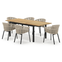De Amalfi tuinset straalt eenvoud uit en creëert een natuurlijk gevoel dankzij de afwerking in teak. De tafel is verlengbaar en klap je makkelijk in met het vlindersysteem, een systeem dat het verlengstuk in de tafel laat verdwijnen.