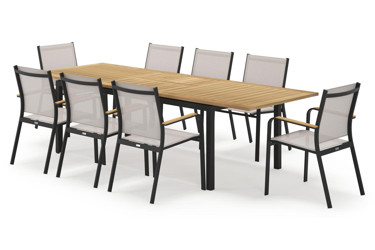 De Amalfi tuinset straalt eenvoud uit en creëert een natuurlijk gevoel dankzij de afwerking in teak. De tafel is verlengbaar en klap je makkelijk in met het vlindersysteem, een systeem dat het verlengstuk in de tafel laat verdwijnen.