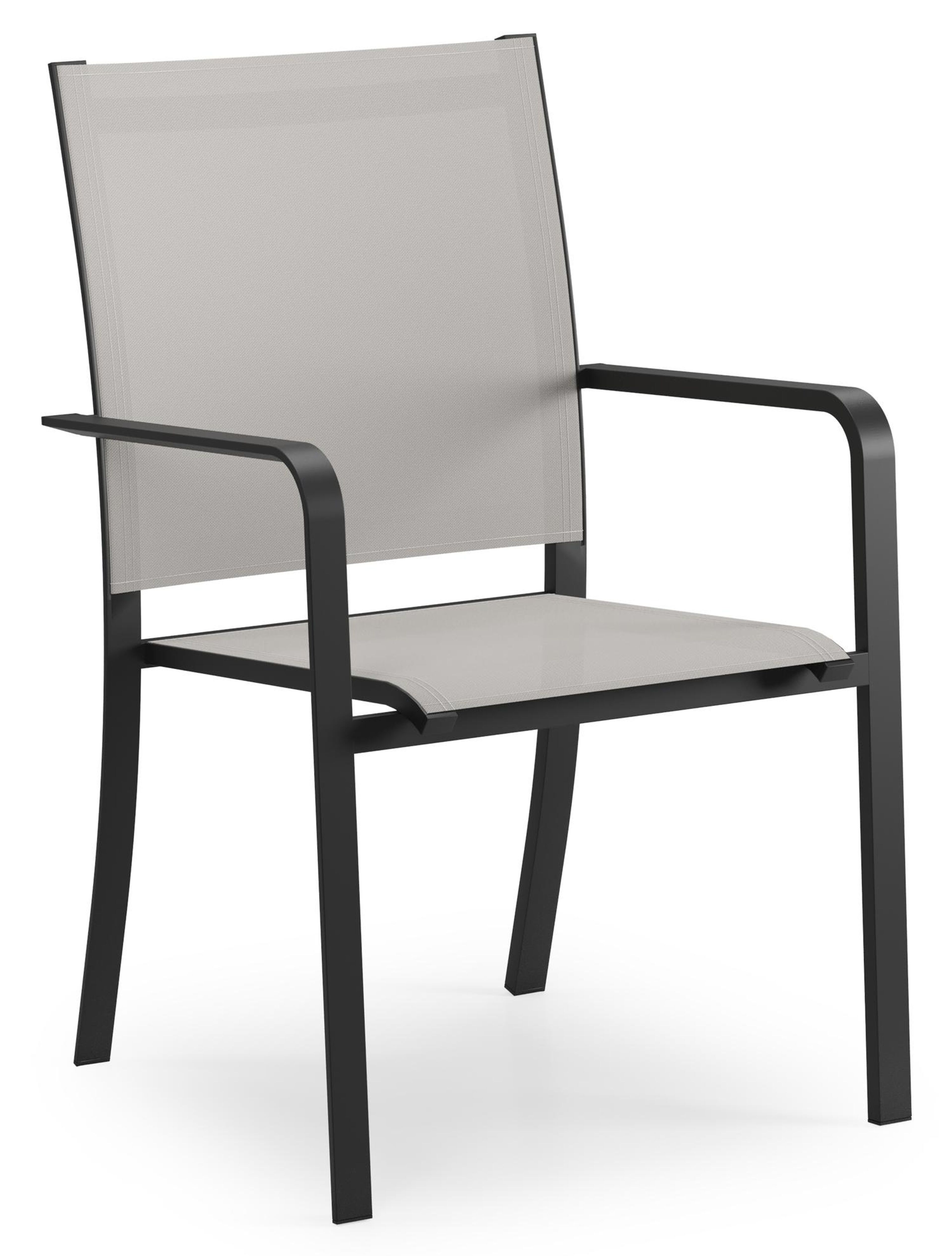 De Calobra stoel heeft een naar achteren gebogen rugleuning en afgeronde armleuningen met een optimaal zitcomfort. Het frame van de stoel is gemaakt uit roestvrij aluminium. De zitting en rugleuning zijn gemaakt uit stevige textilene, een stijlvol en onderhoudsvriendelijk materiaal. Verkrijgbaar in verschillende kleuren. De stoel is stapelbaar en dus makkelijk op te bergen.