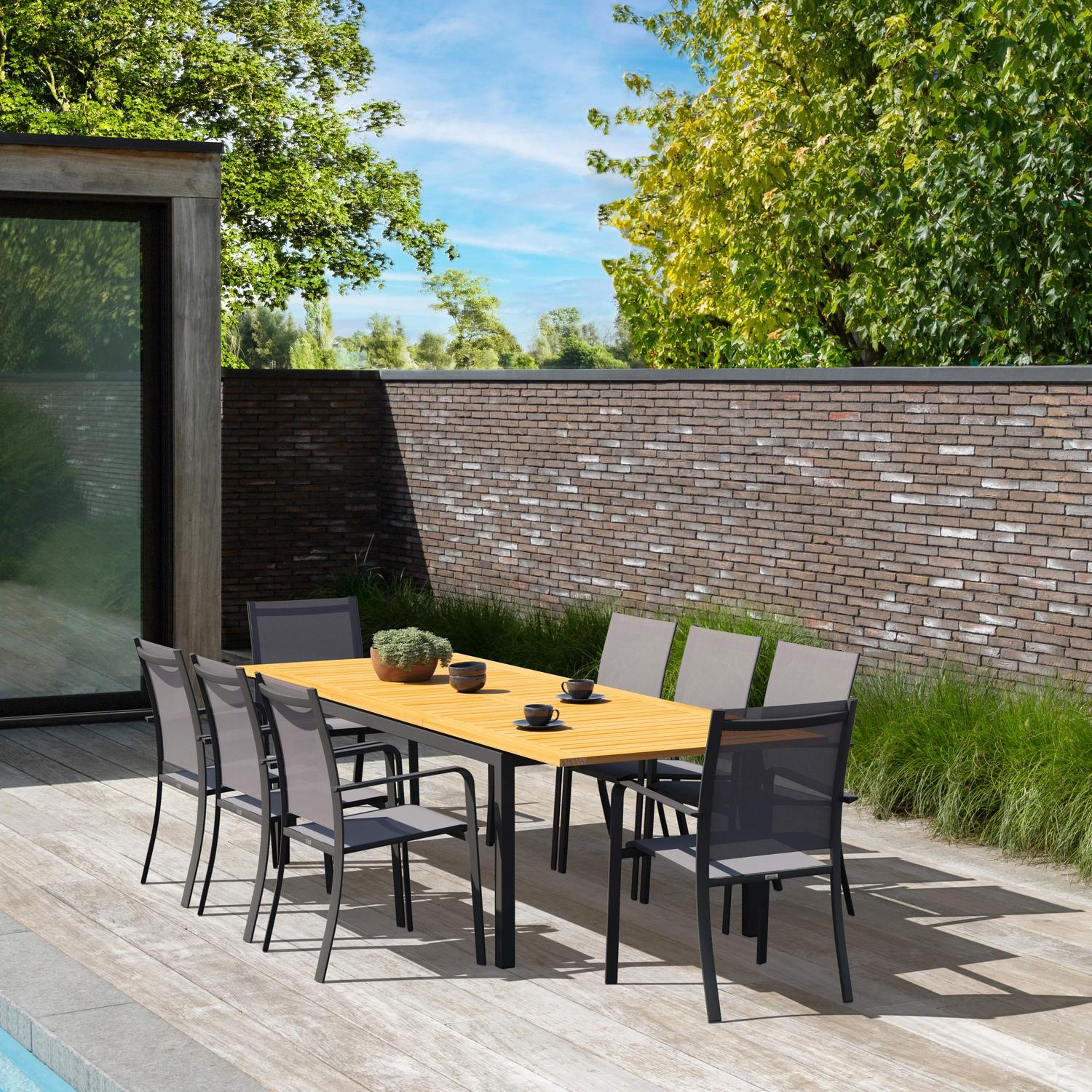 Ervaar onvergetelijke buitenmomenten met de kwalitatieve Amalfi tuinset met verlengbare tafel.