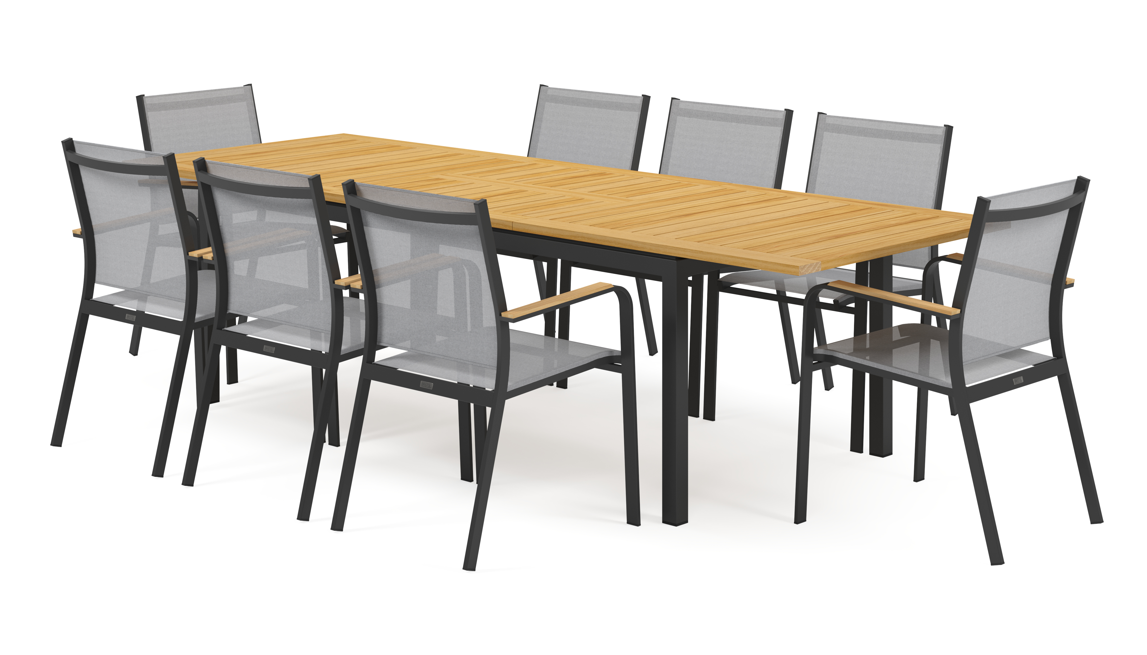 Amalfi tuinset met verlengbare tafel straalt eenvoud uit en creëert een natuurlijk gevoel dankzij de afwerking in teak. De tafel is verlengbaar en klap je makkelijk in met het vlindersysteem, een systeem dat het verlengstuk in de tafel laat verdwijnen.