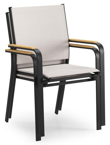 Amalfi tuinstoel in zwart aluminium en beige single textilene met teak armleuning | Exterioo