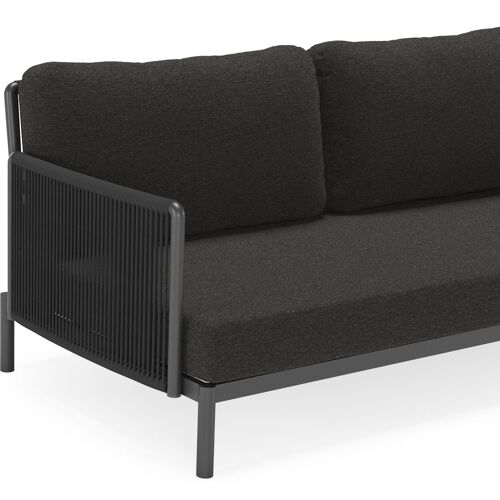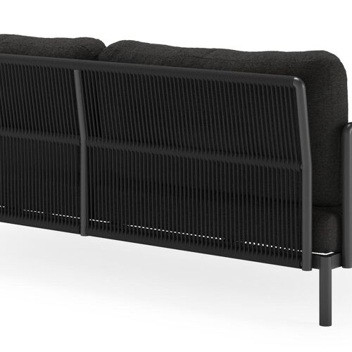 Amarante loungeset in zwart aluminium en zwart verticaal geweven ronde rope met zwart weather+ softtouch kussens | Exterioo