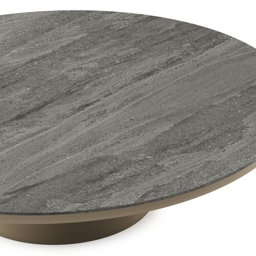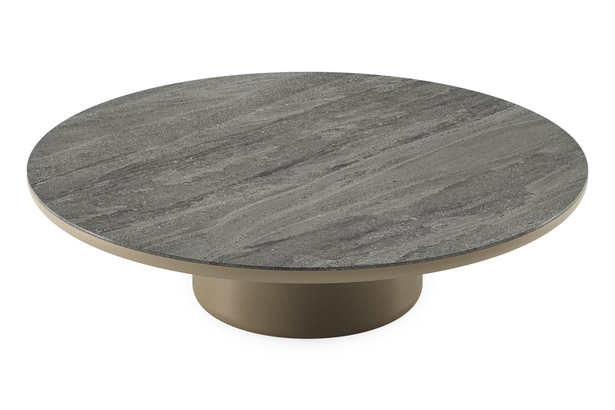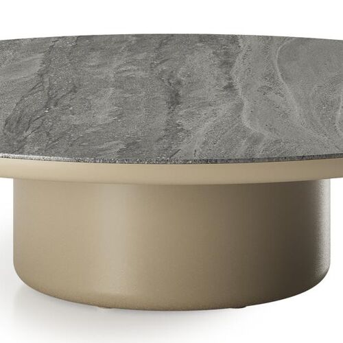 Amico loungetafel rond in beige aluminium en volkeramiek Aspen Grey - Dia. 110 x H 28 cm | Exterioo