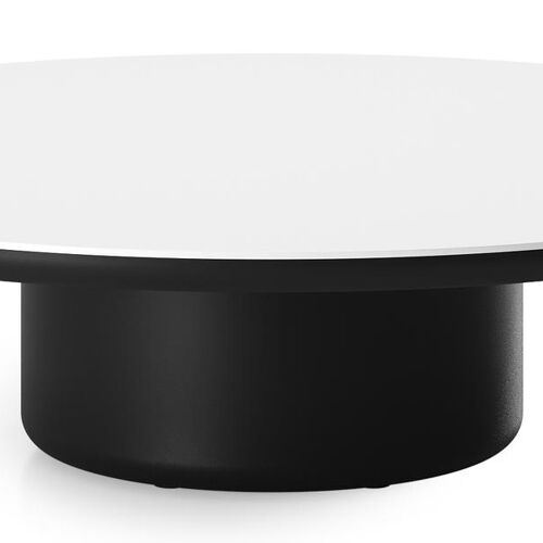 Amico loungetafel rond in zwart aluminium en volkeramiek Arctic White - Dia. 110 x H 28 cm | Exterioo