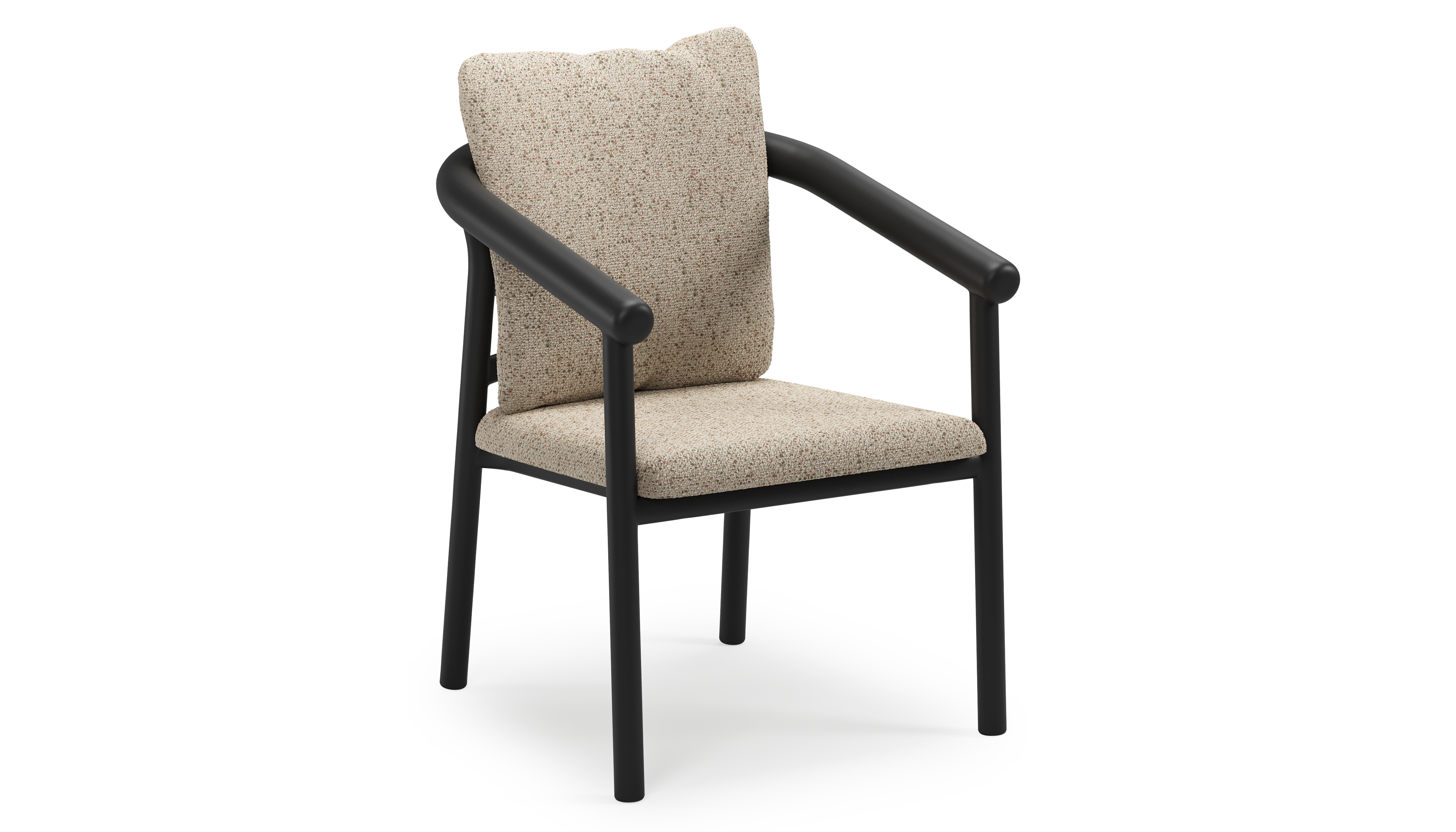 Amico stapelbare tuinstoel in zwart aluminium met stoelkussen in All Weather Cosytica Bora Jungle | Exterioo tuinmeubelen