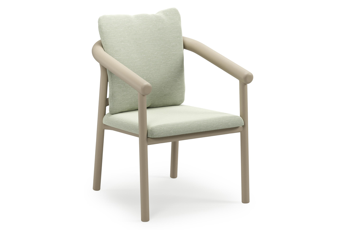 Amico stapelbare tuinstoel in beige aluminium met stoelkussen in All Weather Sunbrella® Luxe Slow Spirea | Exterioo
