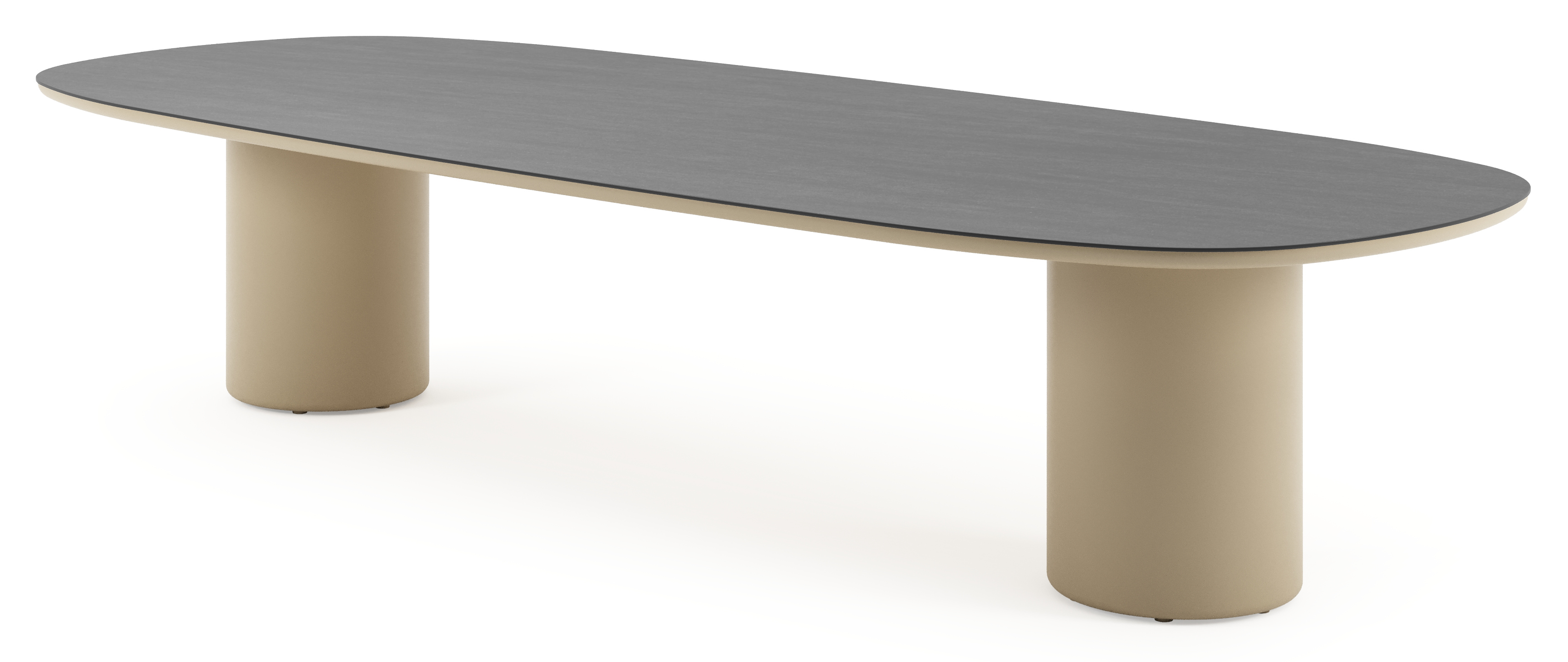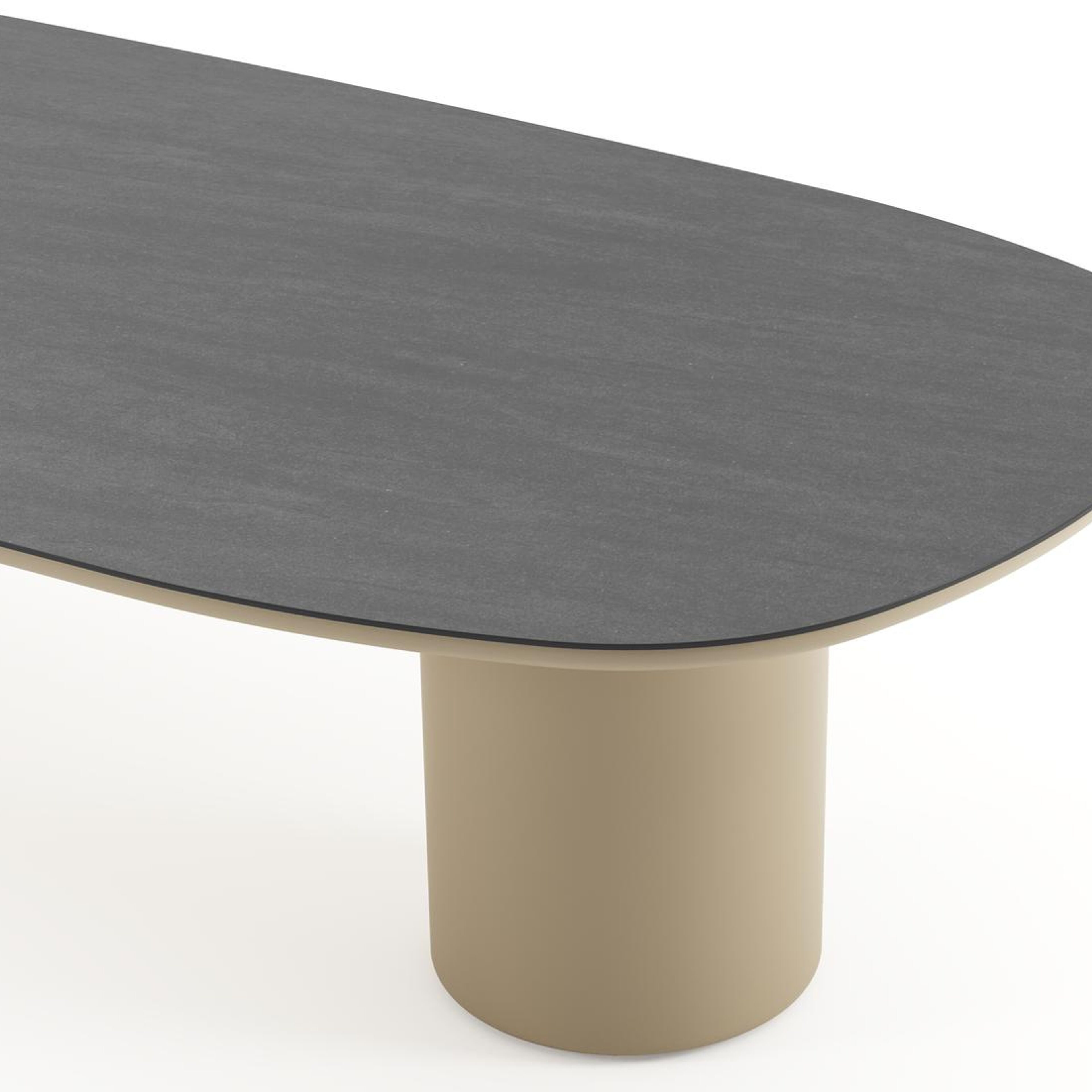 Amico low dining tuintafel bombo in beige aluminium en volkeramiek Basalt Black - L 320 x B 130 x H 61 cm | Exterioo tuinmeubelen