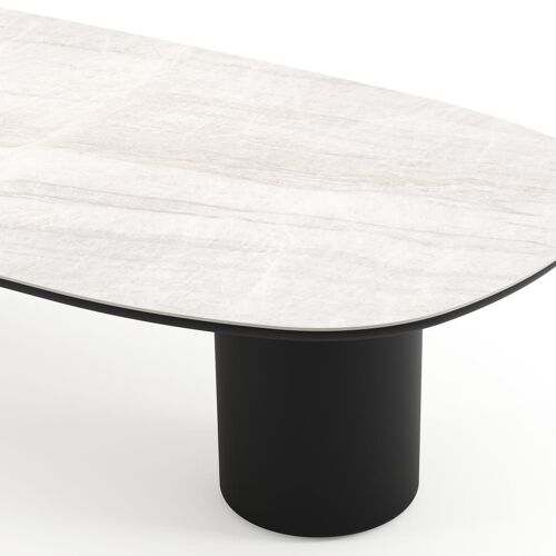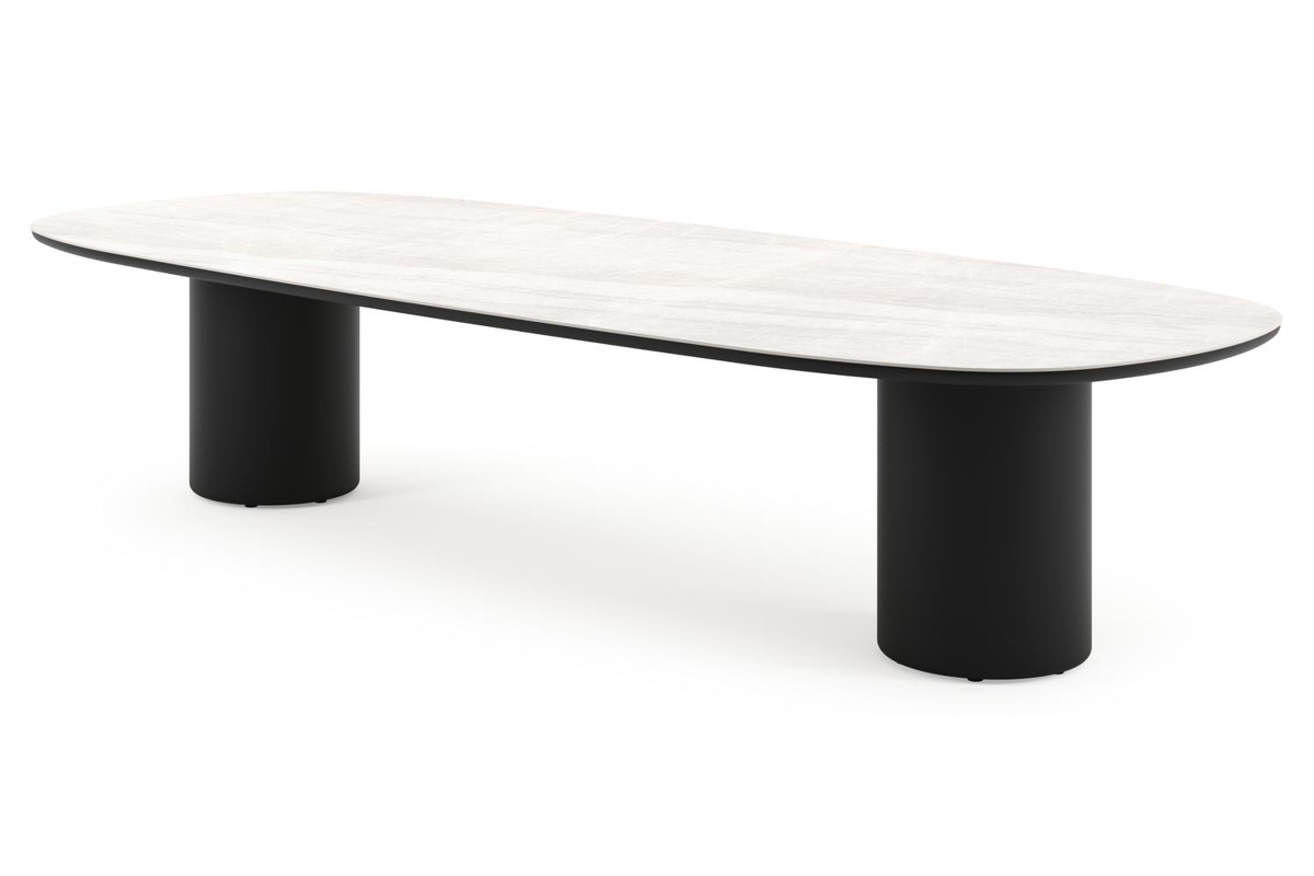 Amico low dining tuintafel bombo in zwart aluminium en volkeramiek Taj Mahal - L 320 x B 130 x H 61 cm | Exterioo