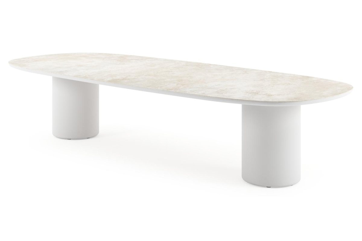 Amico low dining tuintafel bombo in wit aluminium en volkeramiek Rapolano - L 320 x B 130 x H 61 cm | Exterioo