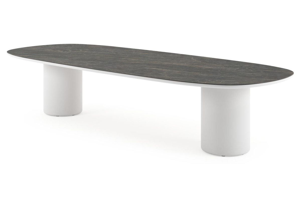 Amico low dining tuintafel bombo in wit aluminium en volkeramiek Black Obsession - L 320 x B 130 x H 61 cm | Exterioo