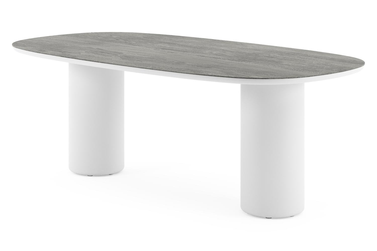 Amico tuintafel bombo in wit aluminium en volkeramiek Aspen Grey - L 210 x B 110 x H 73.5 cm | Exterioo