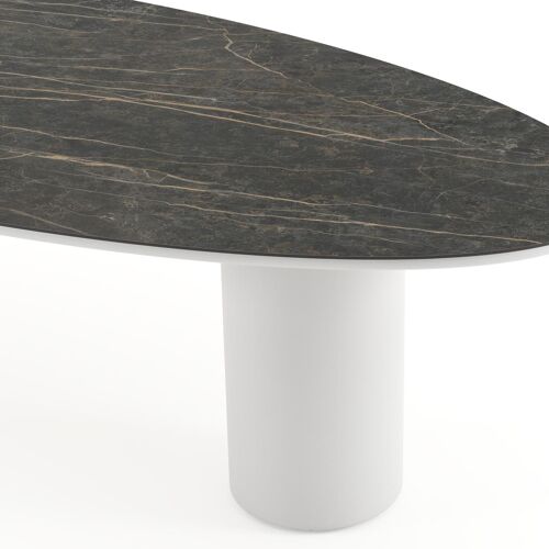 Amico tuintafel ovaal in wit aluminium en volkeramiek Black Obsession - L 320 x B 130 x H 73.5 cm | Exterioo