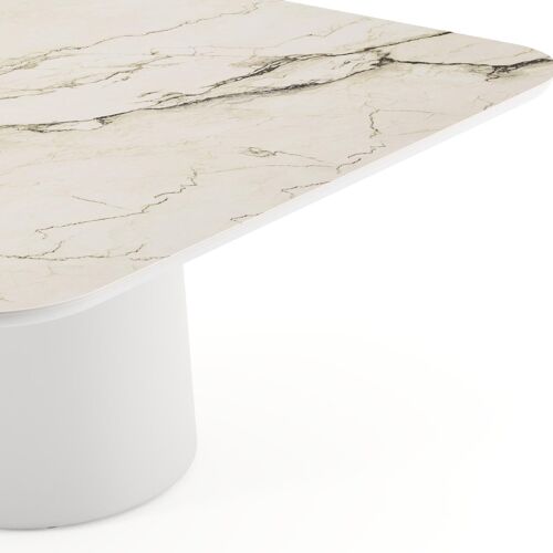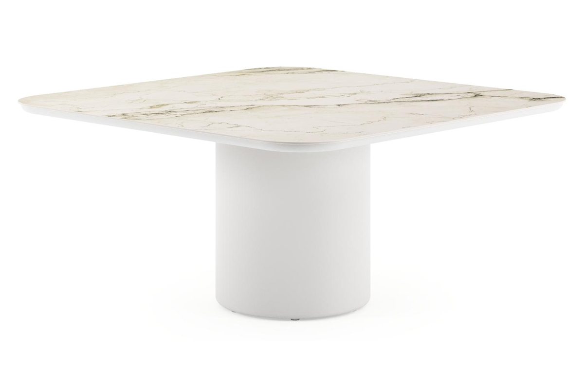 Amico tuintafel afgerond vierkant in wit aluminium en volkeramiek Colorado Dunes - L 148 x B 148 x H 73.5 cm | Exterioo