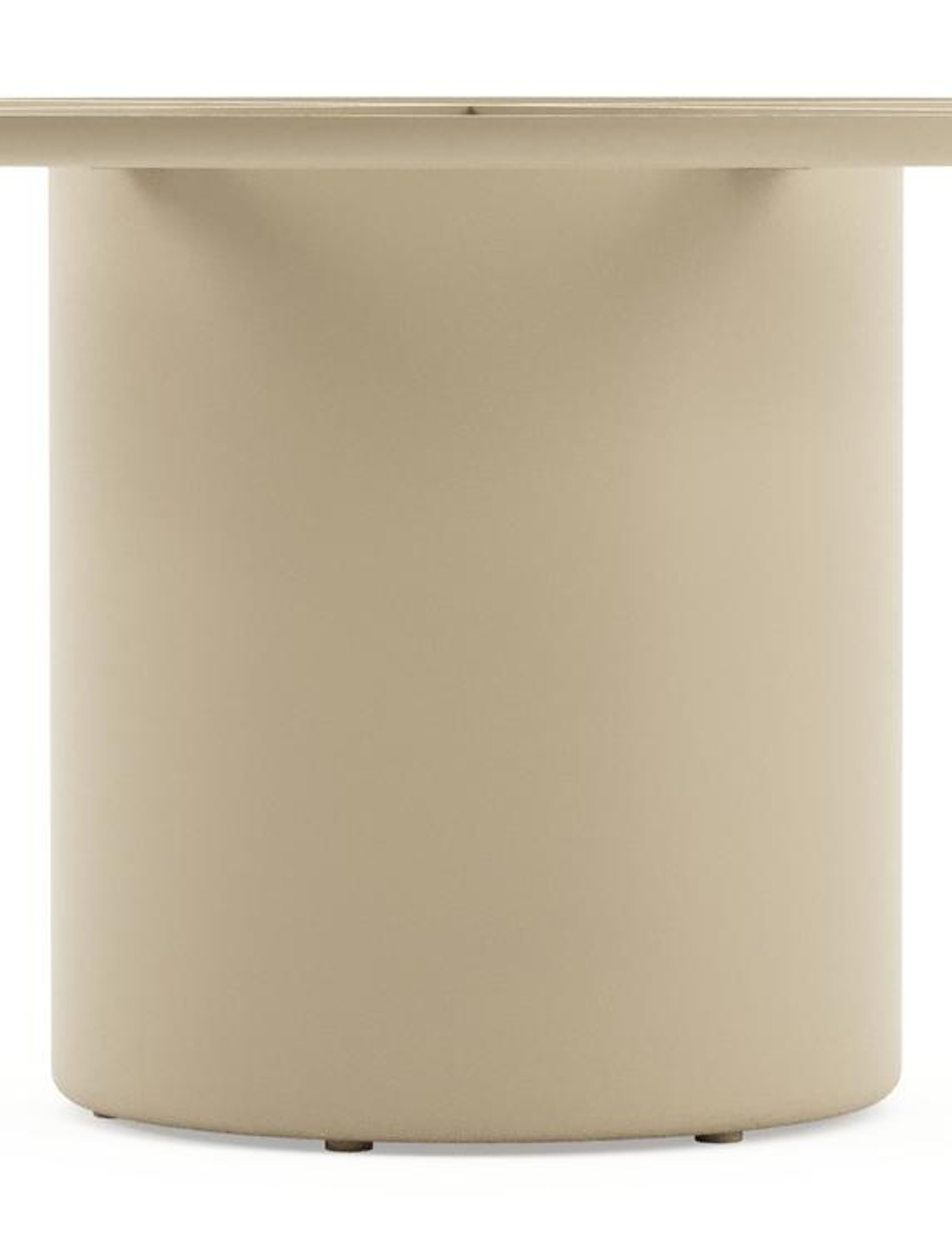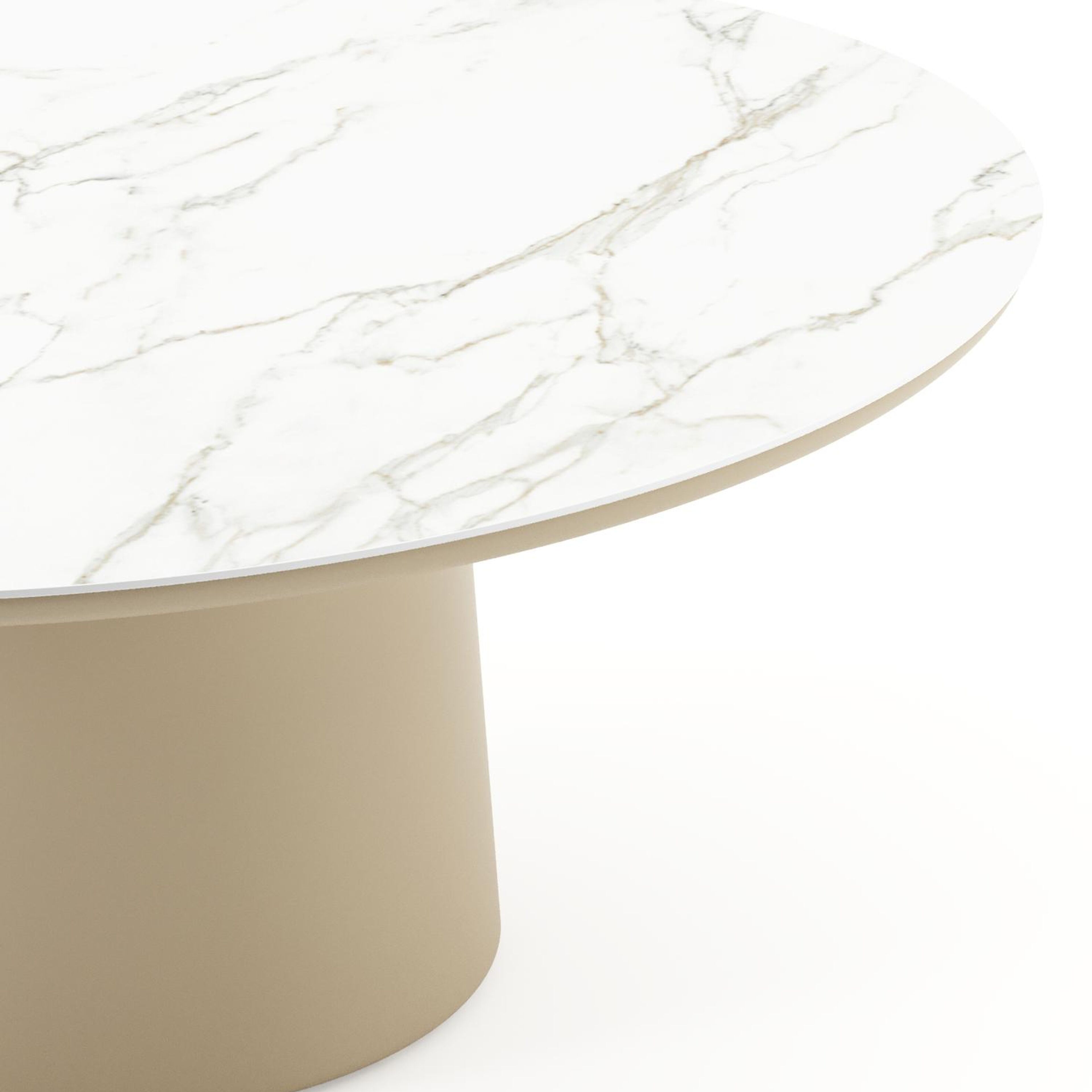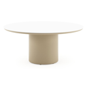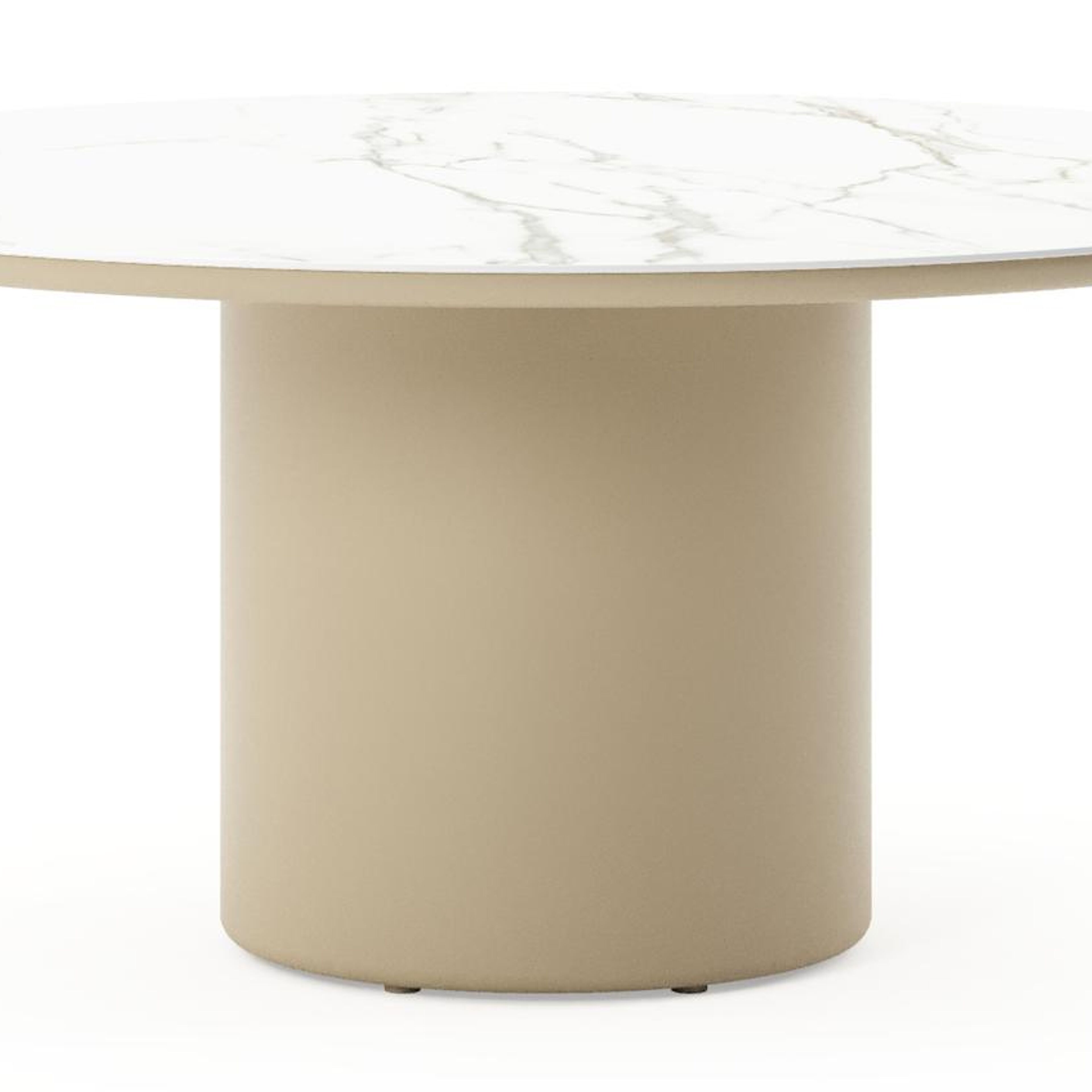 Amico low dining tuintafel rond in beige aluminium en volkeramiek Calacatta - Dia. 148 x H 61 cm | Exterioo tuinmeubelen