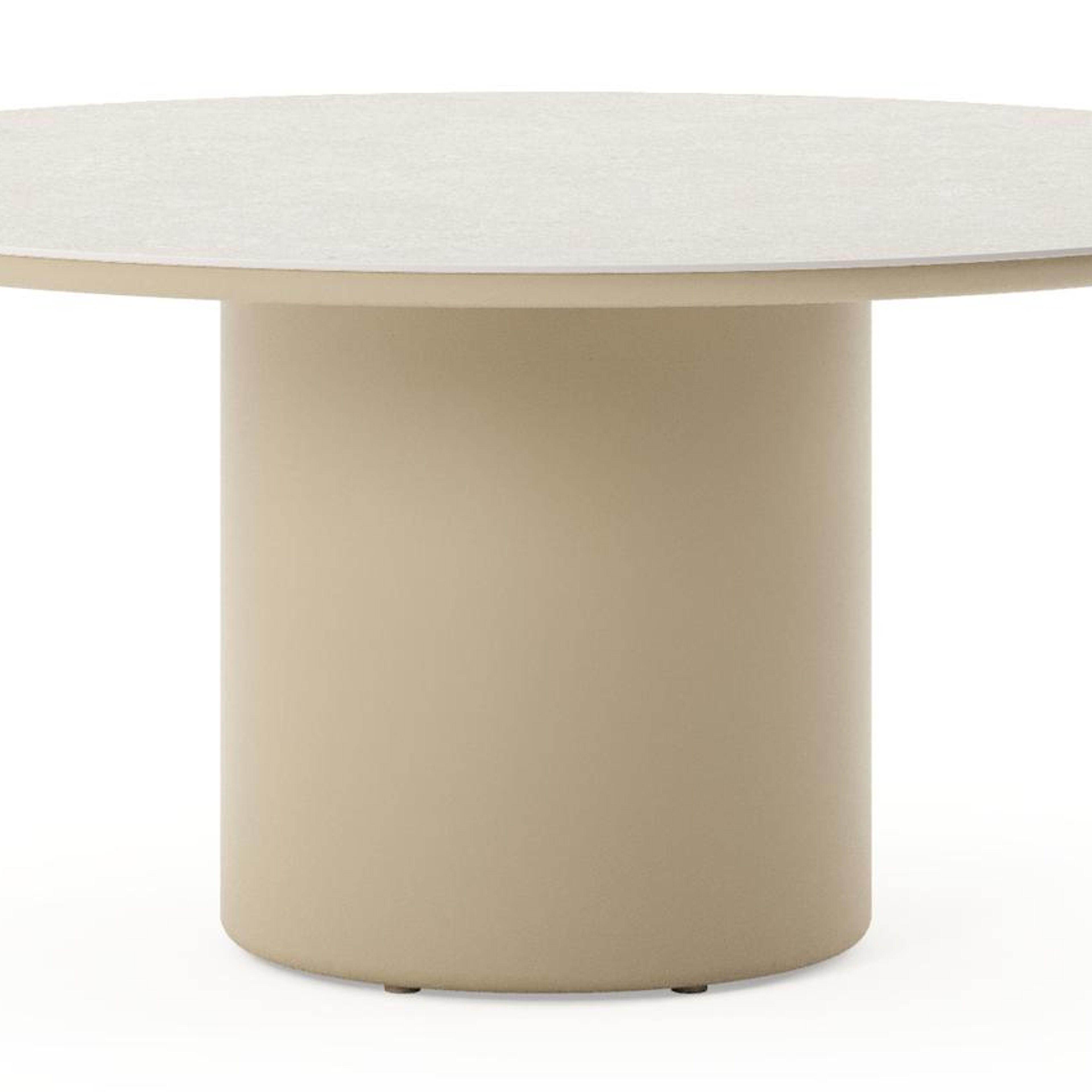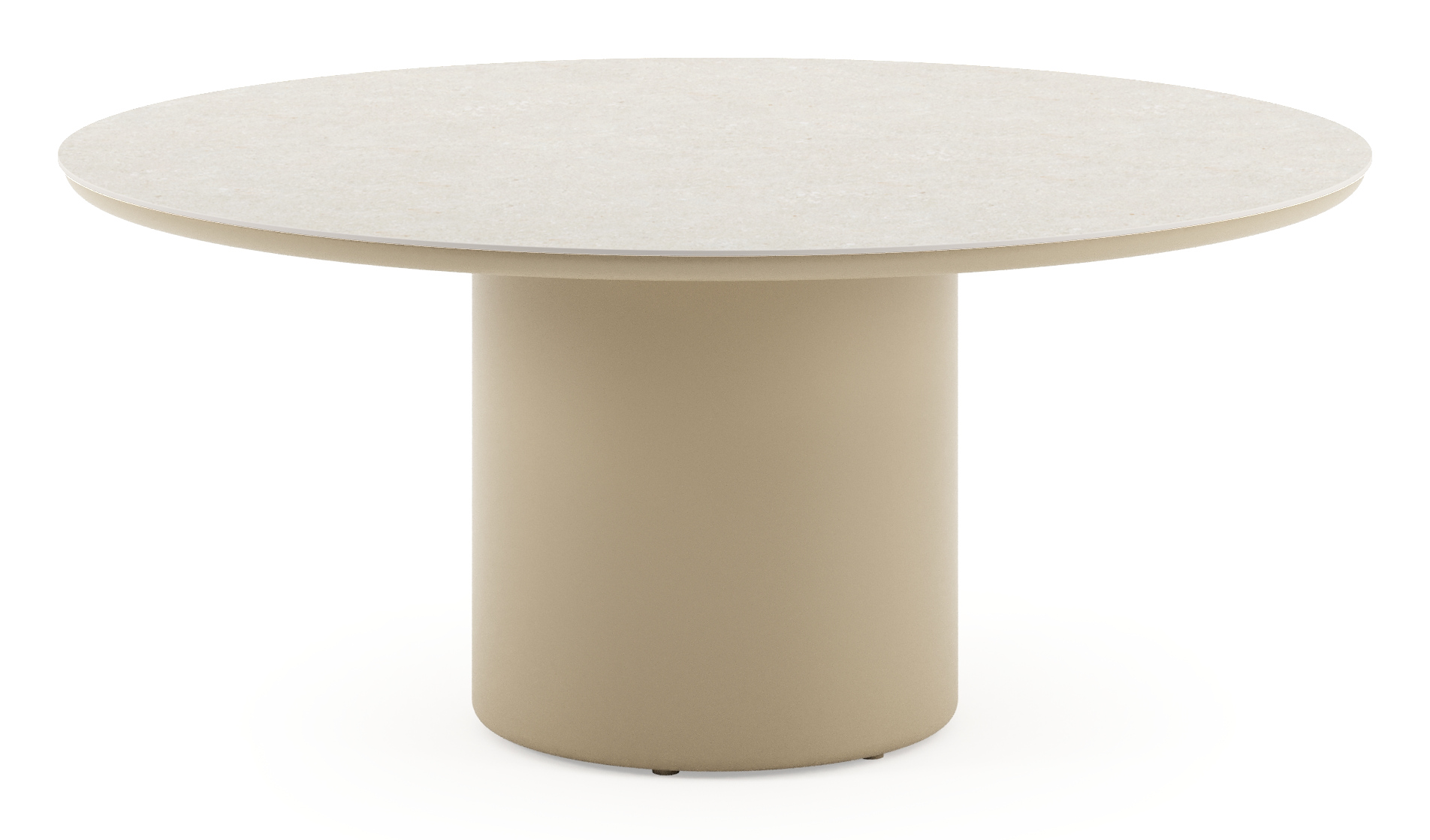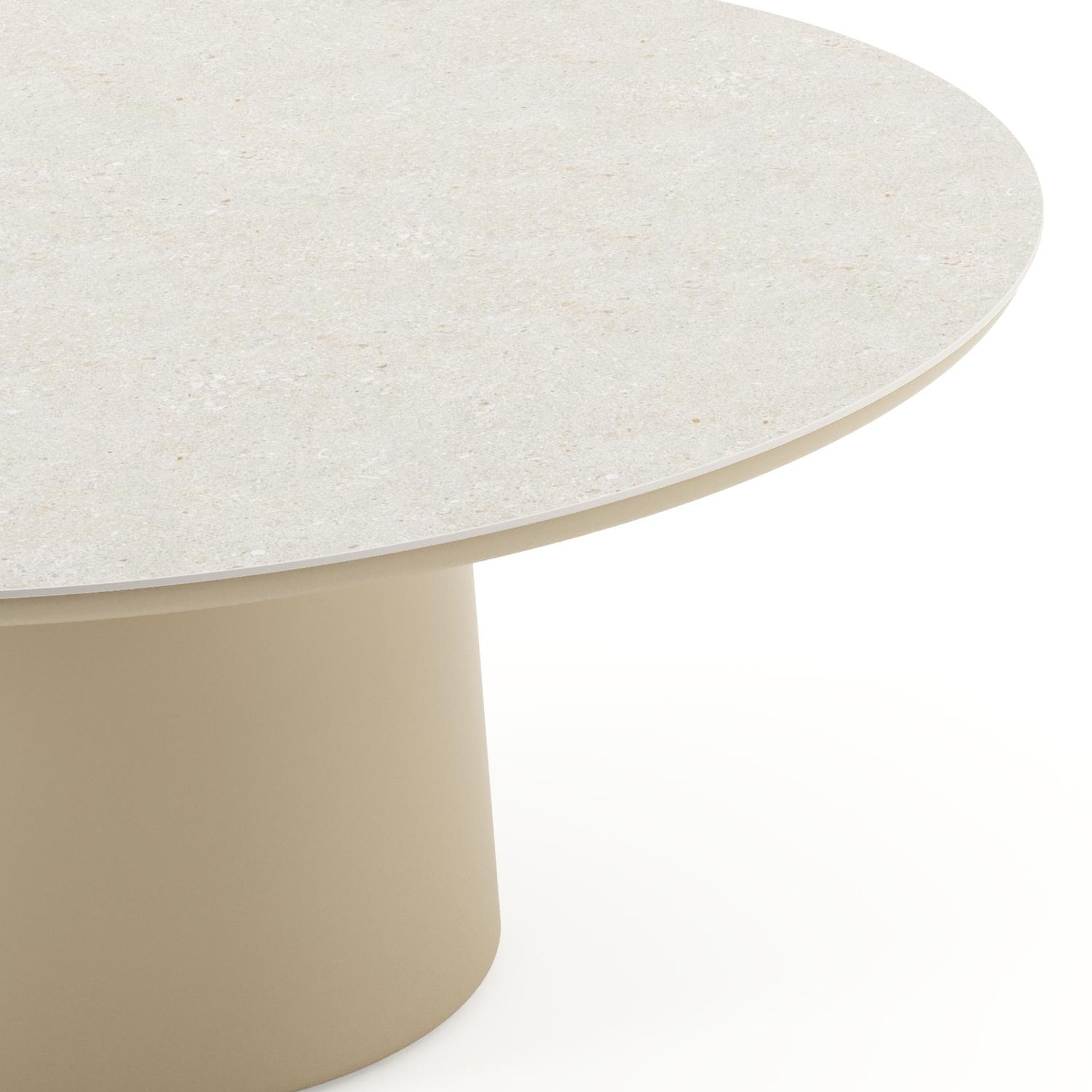Amico low dining tuintafel rond in beige aluminium en volkeramiek Shilin - Dia. 148 x H 61 cm | Exterioo tuinmeubelen