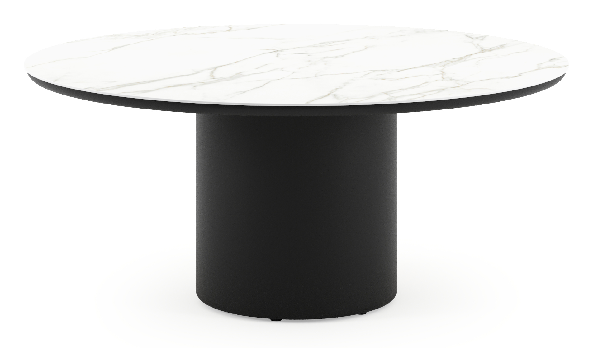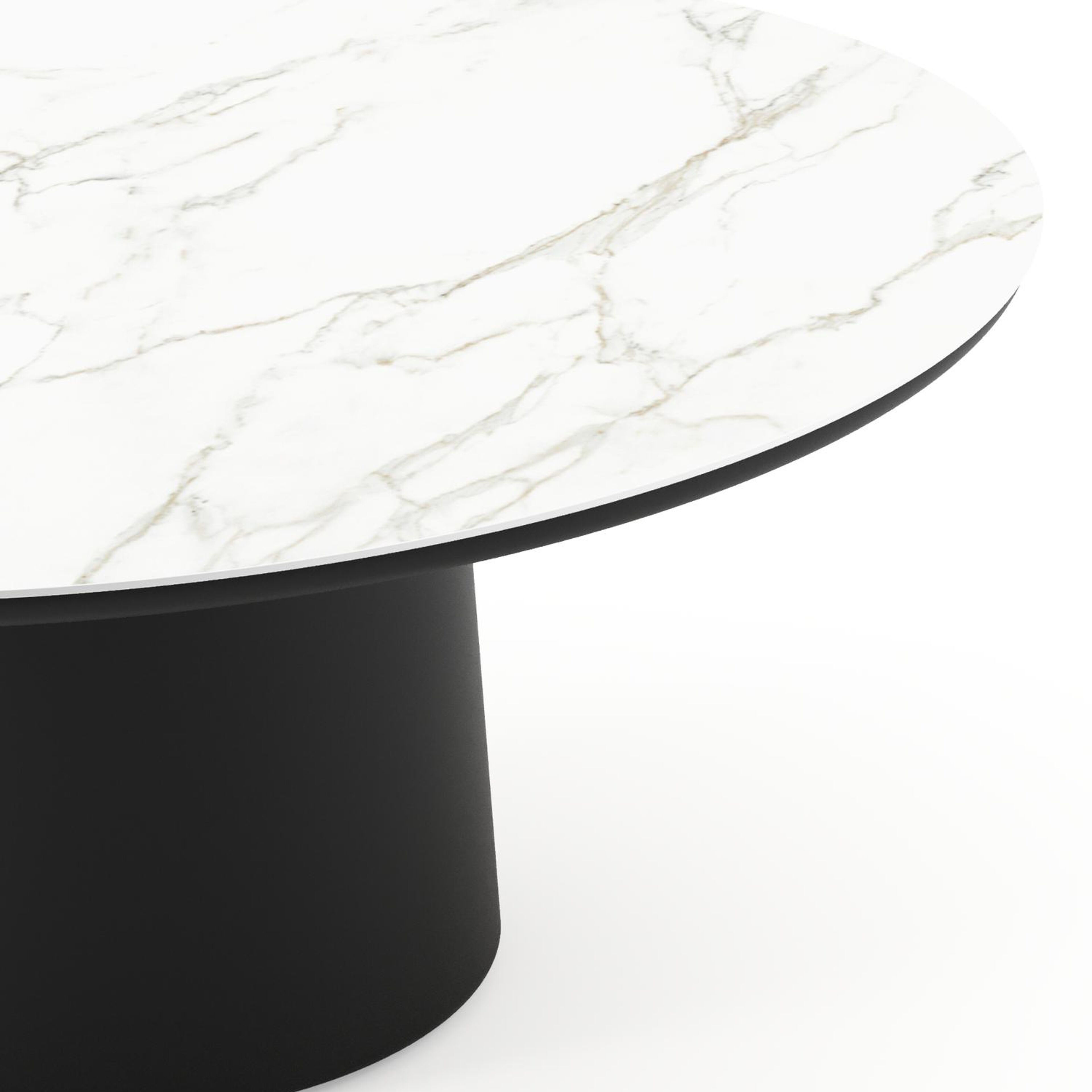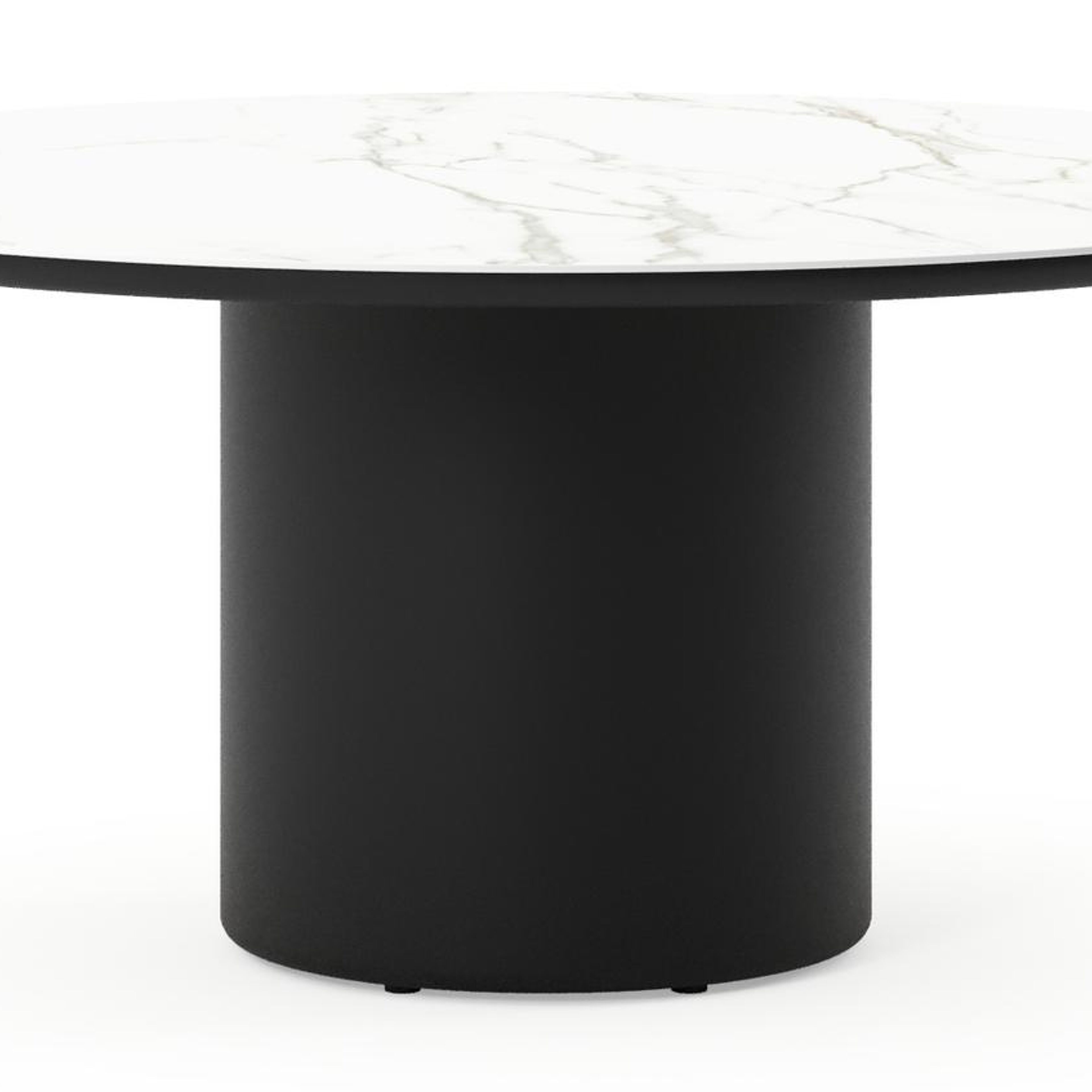 Amico low dining tuintafel rond in zwart aluminium en volkeramiek Calacatta - Dia. 148 x H 61 cm | Exterioo tuinmeubelen