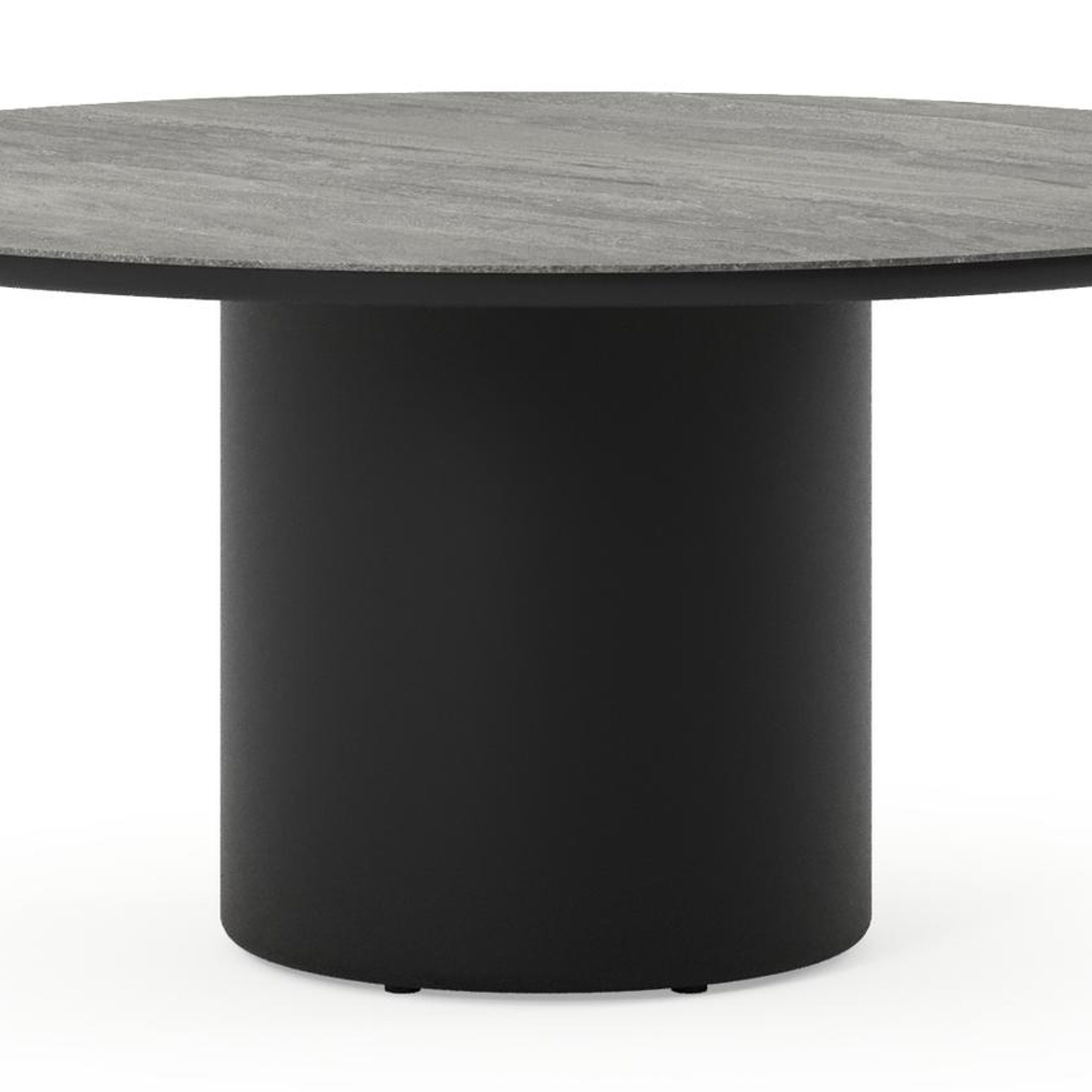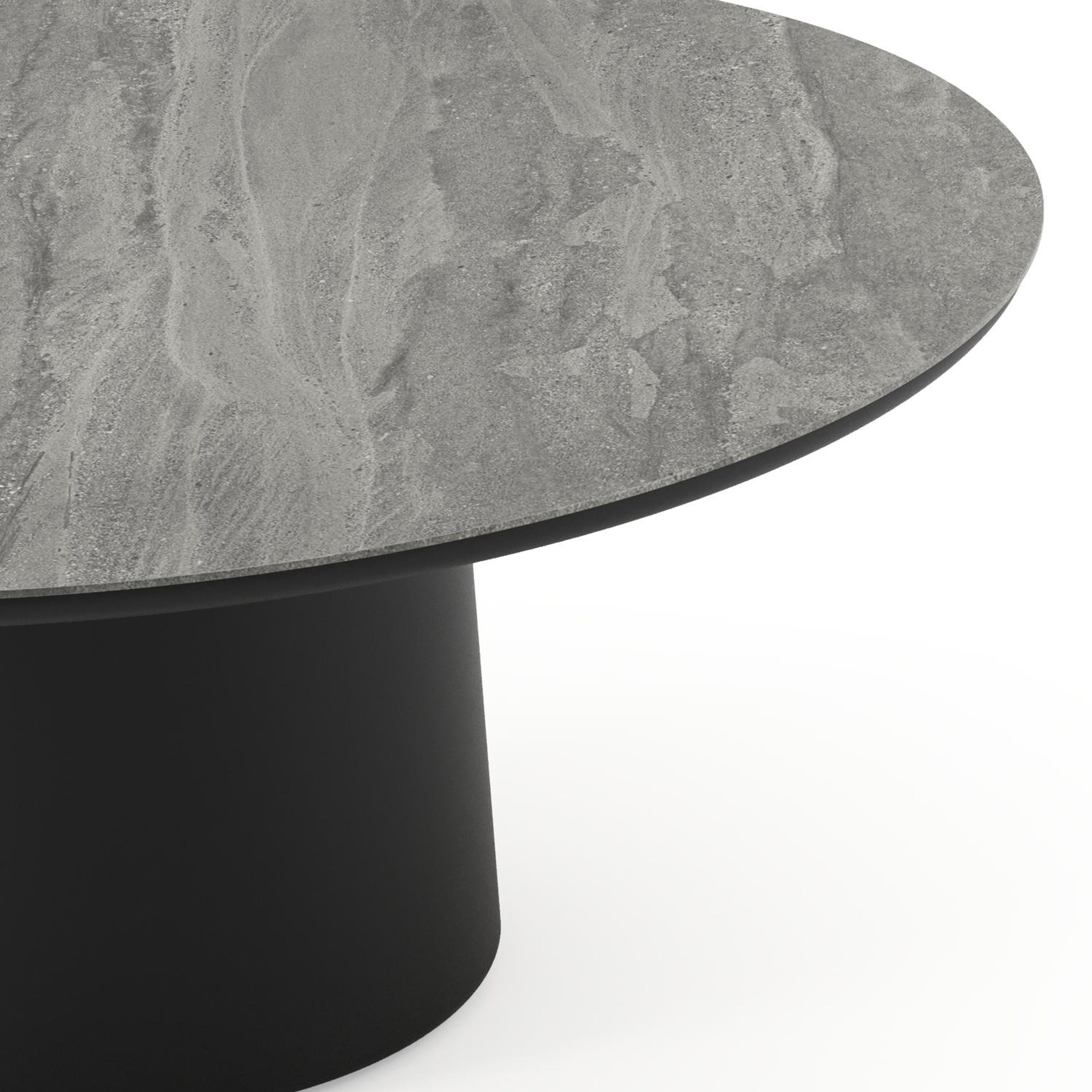 Amico low dining tuintafel rond in zwart aluminium en volkeramiek Aspen Grey - Dia. 148 x H 61 cm | Exterioo tuinmeubelen