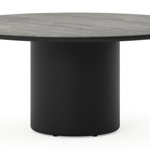 Amico low dining tuintafel rond in zwart aluminium en volkeramiek Aspen Grey - Dia. 148 x H 61 cm | Exterioo