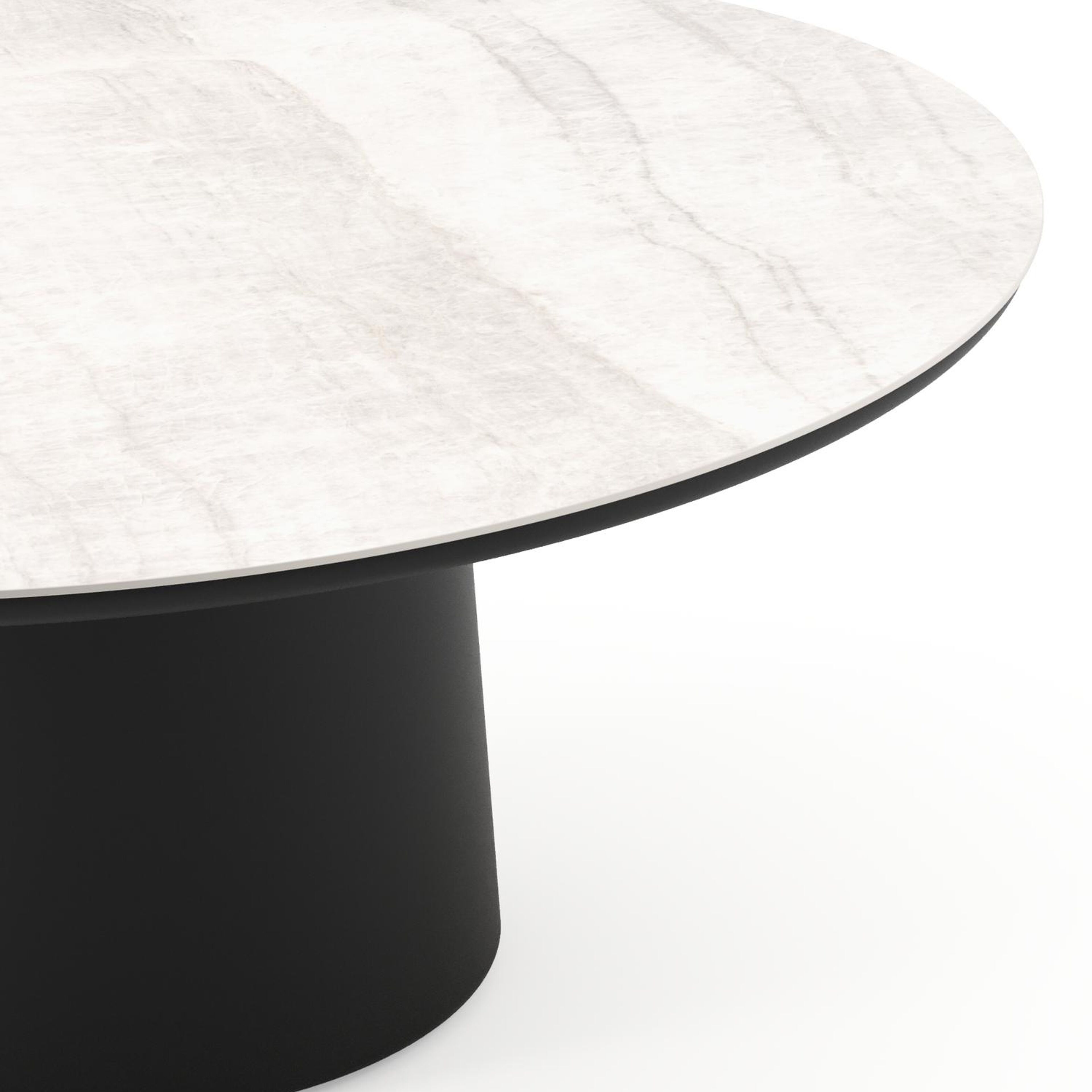 Amico low dining tuintafel rond in zwart aluminium en volkeramiek Taj Mahal - Dia. 148 x H 61 cm | Exterioo tuinmeubelen