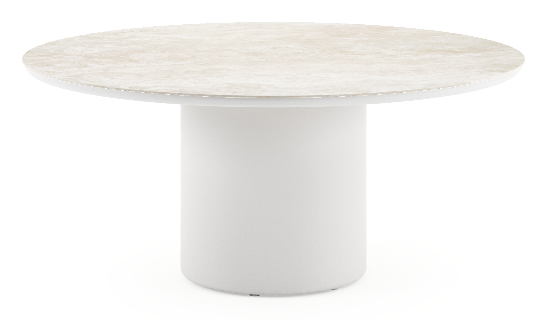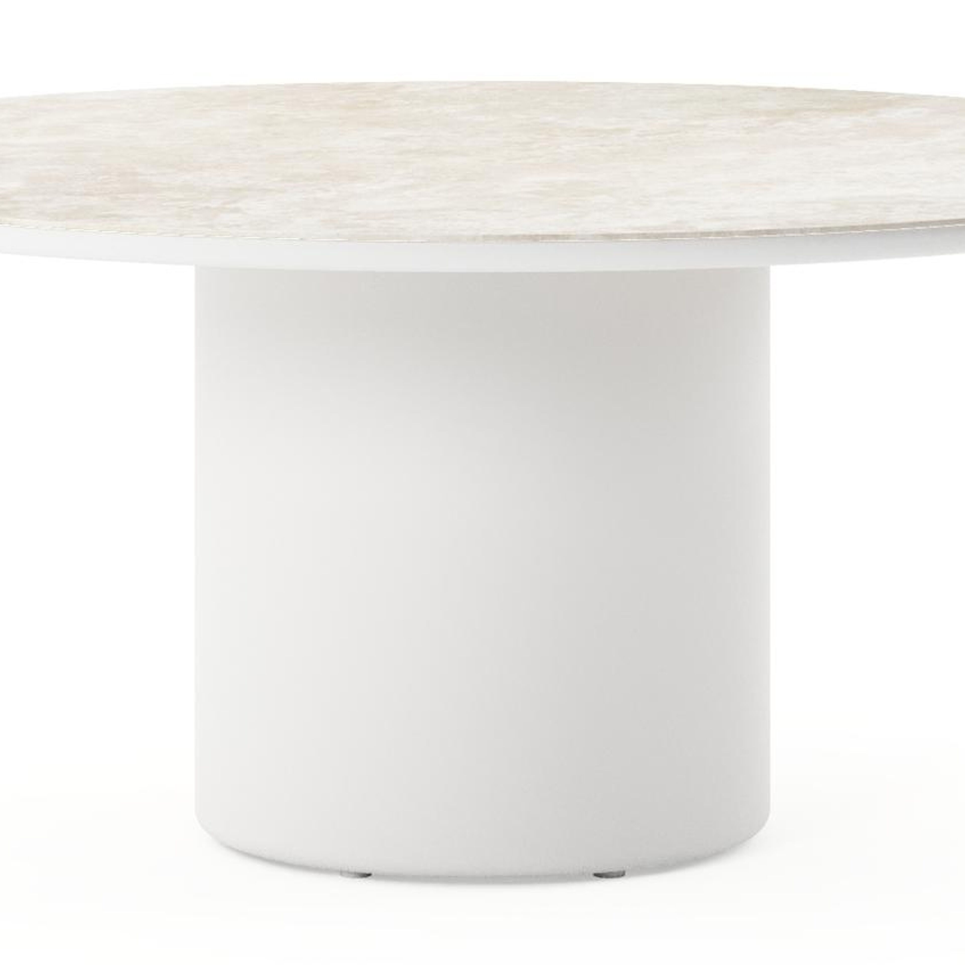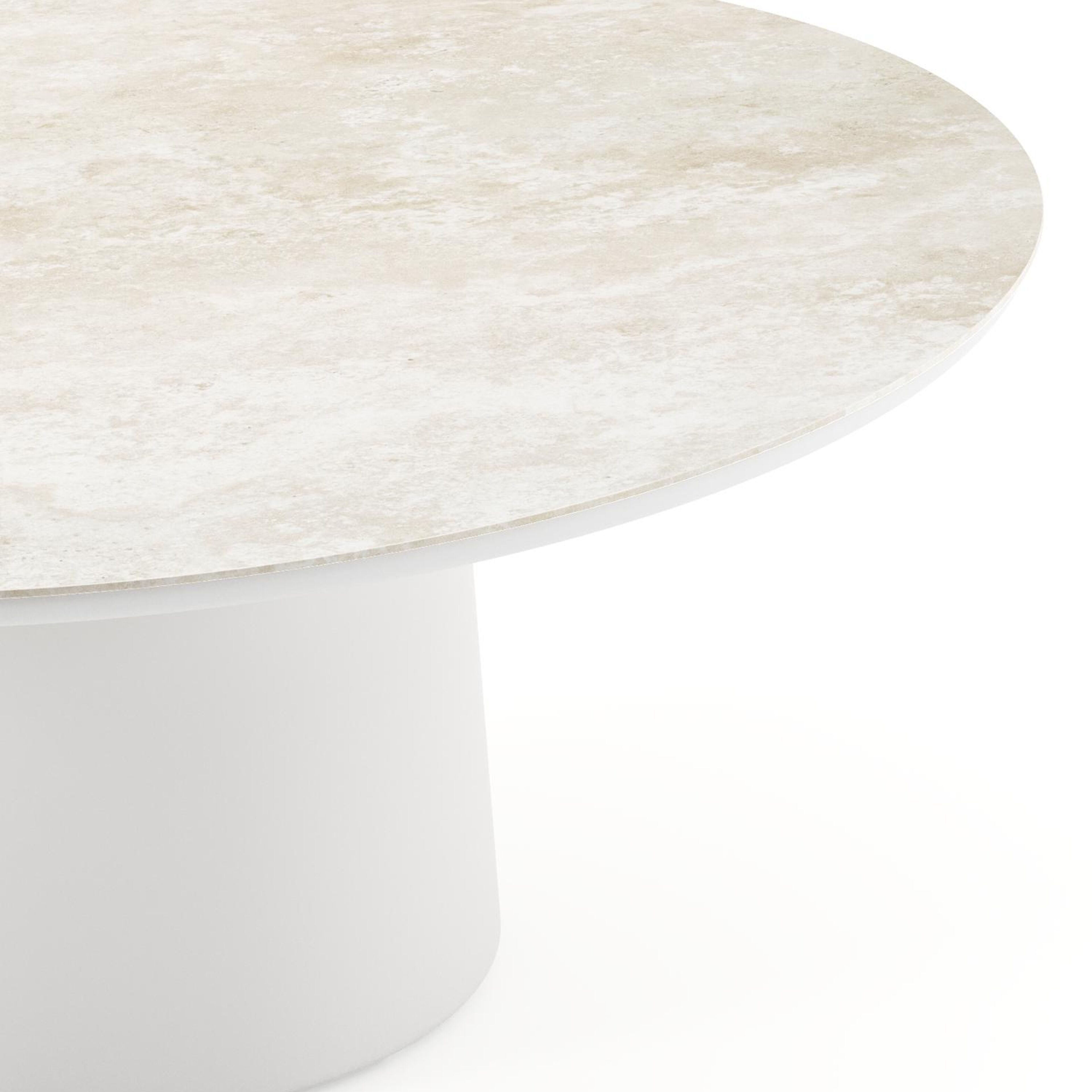 Amico low dining tuintafel rond in wit aluminium en volkeramiek Rapolano - Dia. 148 x H 61 cm | Exterioo tuinmeubelen
